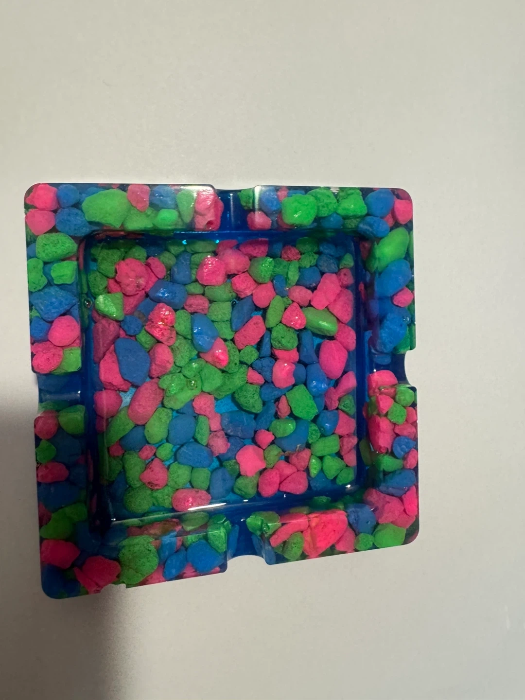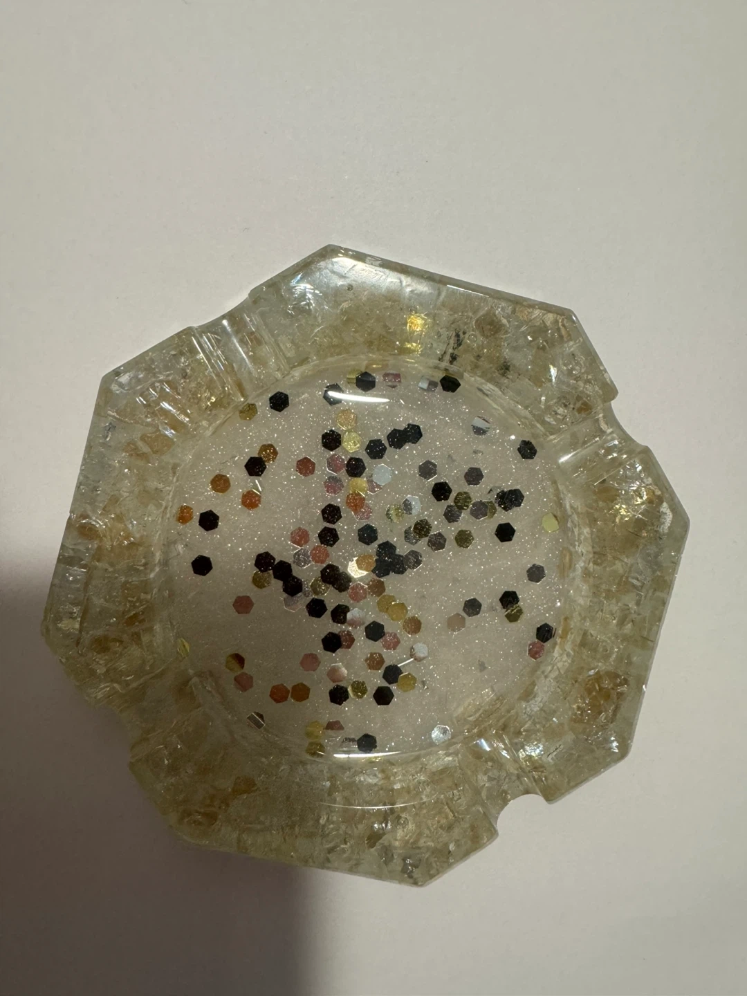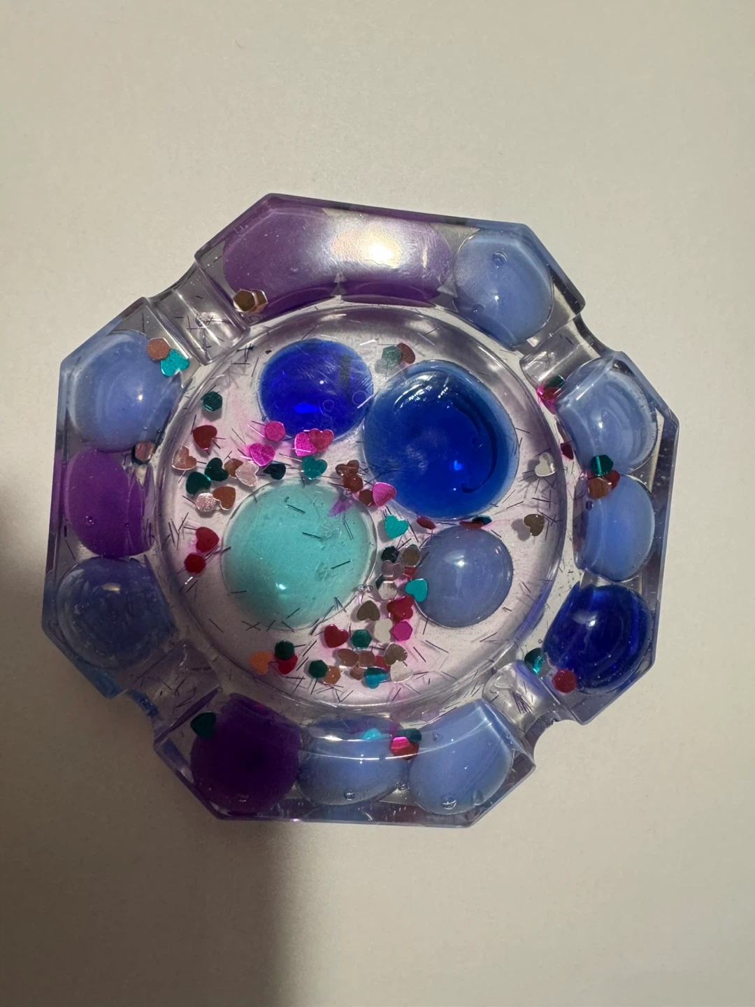 I'm selling a handmade resin ashtray. Each one is unique and colourful! They're perfect for adding a touch of personality to your space
