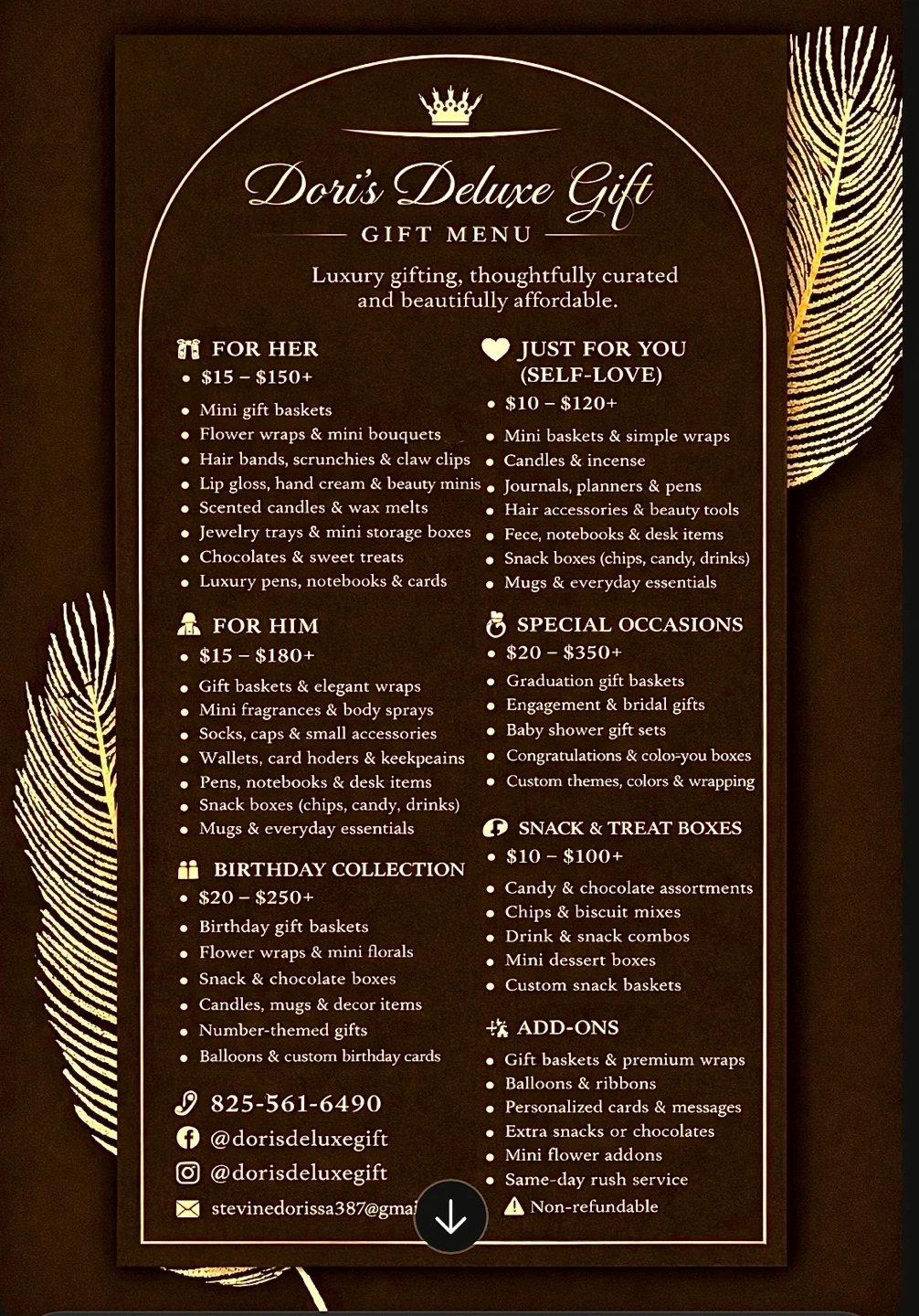 Gift baskets and premium wraps are available! These are perfect for any special occasion or just to treat yourself or someone you love. They are curated with care and delivered with grace!
