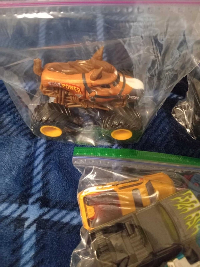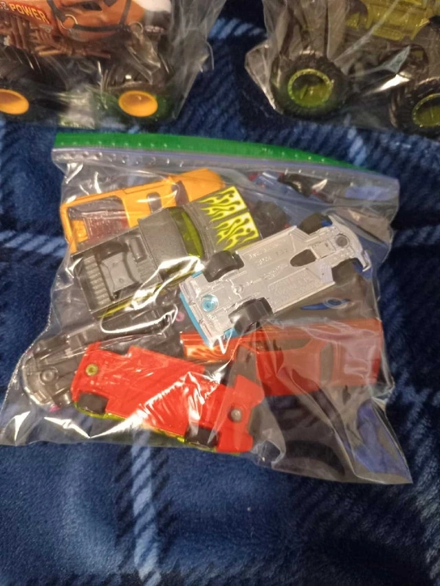 This is a collection of used Hot Wheels cars and Monster Trucks that includes a collection of regular sized hot wheels, and two monster trucks. All are in fantastic condition, as can be seen in the pictures provided. If the ad is still up, they're still available!