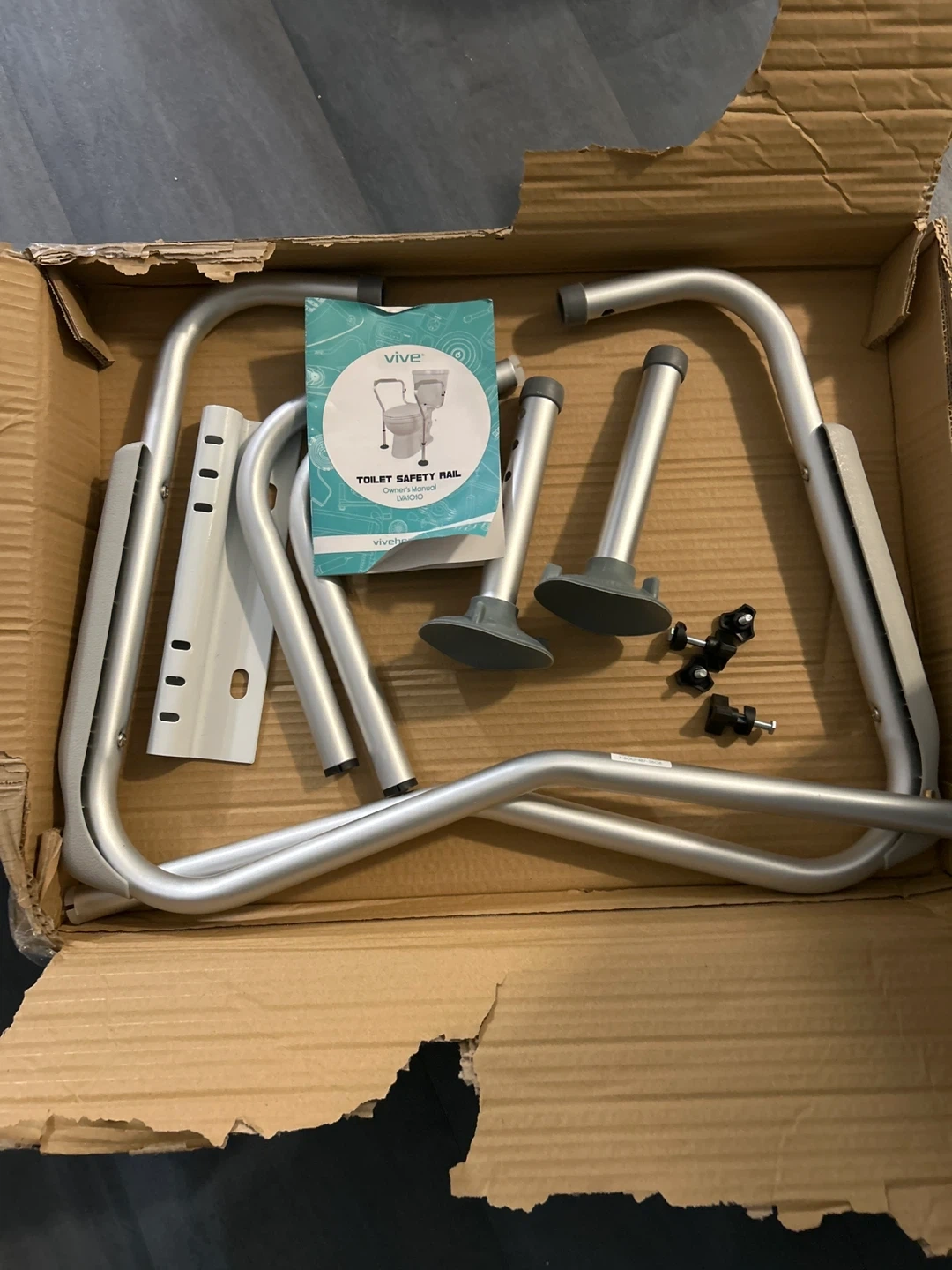 Selling a used but good Vive Toilet Safety Rail, model LVA1010. It's still in the original box and comes with all the components and the owner's manual. A great aid for bathroom safety!