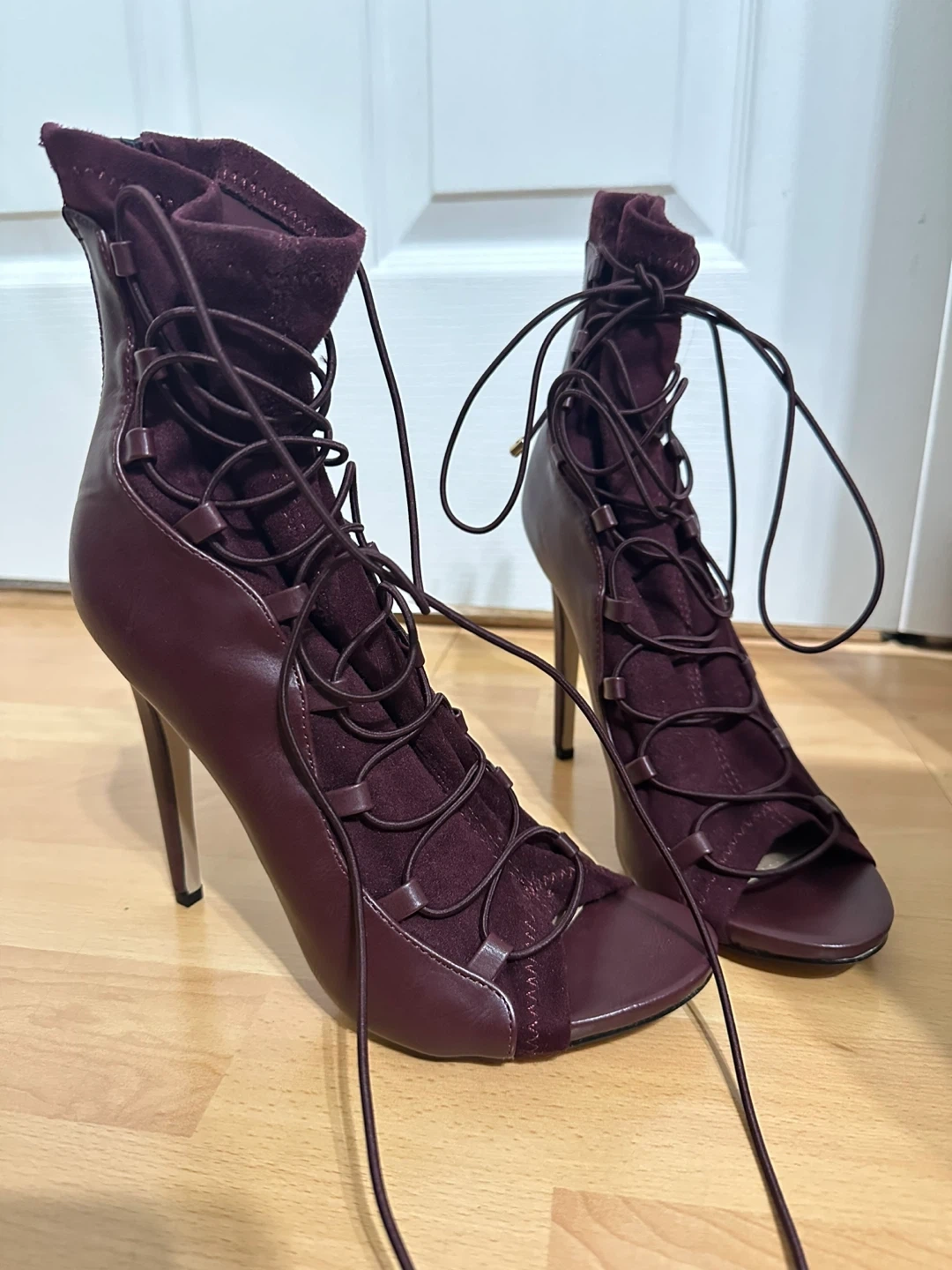 ShoeDazzle Burgundy Lace-Up Heels