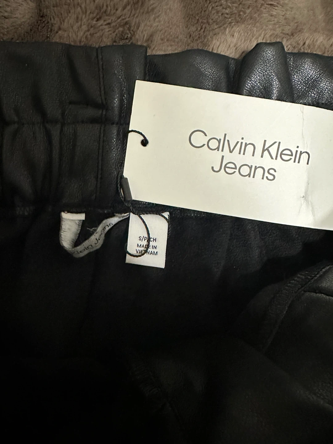 These Calvin Klein Jeans shorts are in excellent condition and ready for a new home! They're a stylish black faux leather with a belted waist. Size small, perfect for adding a bit of edge to your wardrobe.