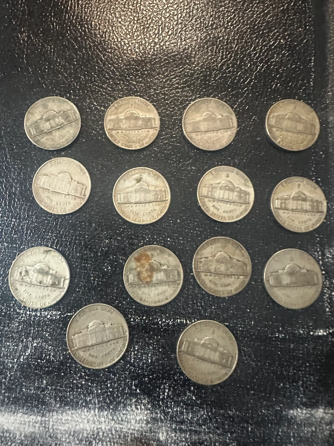 Selling a collection of vintage US nickel coins. They show signs of wear consistent with their age, adding to their unique character. A great find for coin collectors! dated 1943..1944 and 1945.. i guess they are 35%