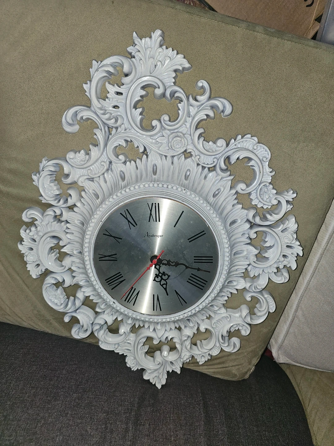 Selling a beautiful Arabesque wall clock! It features an intricate, ornate frame and a classic clock face. This clock would make a stunning addition to any room. Ready to add a touch of elegance to your home decor?