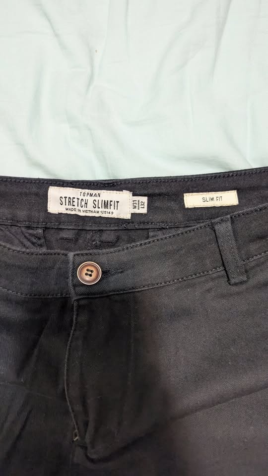 Topman Black Stretch Slim Fit Chino Pants Size 31"