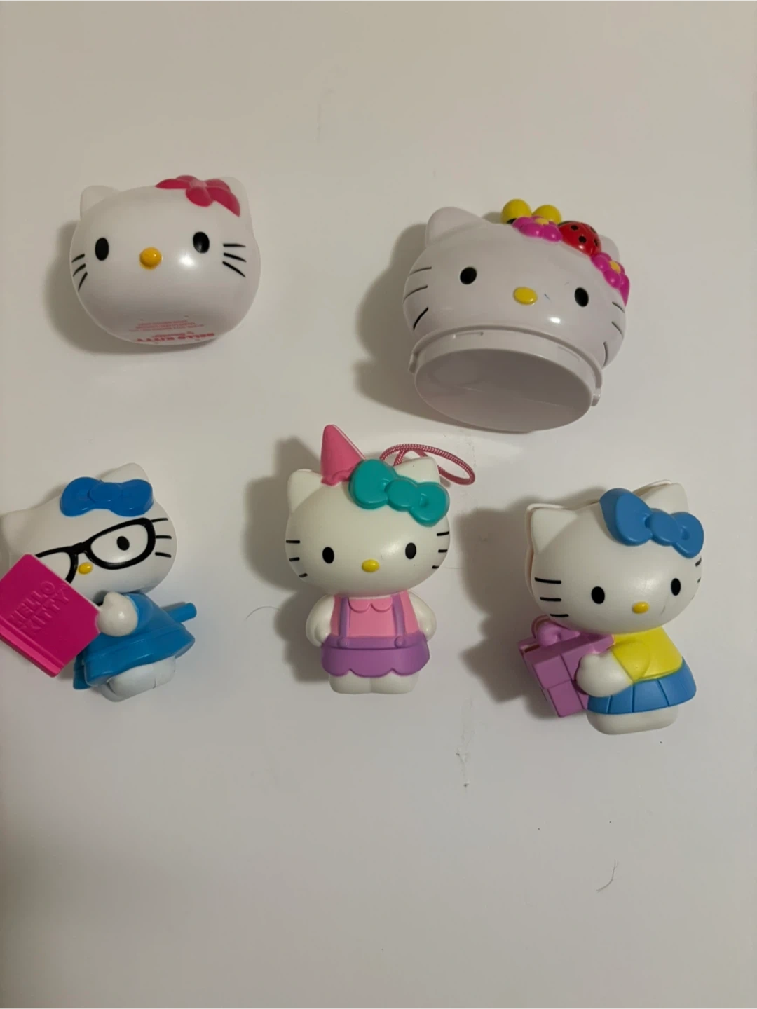 Selling a set of Hello Kitty figurines. They are in good used condition and would be perfect for a collector or a child who loves Hello Kitty! There are five figurines in total.