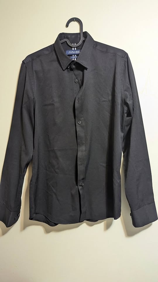 Zara Man Black Slim Fit Stretch Dress Shirt Size S