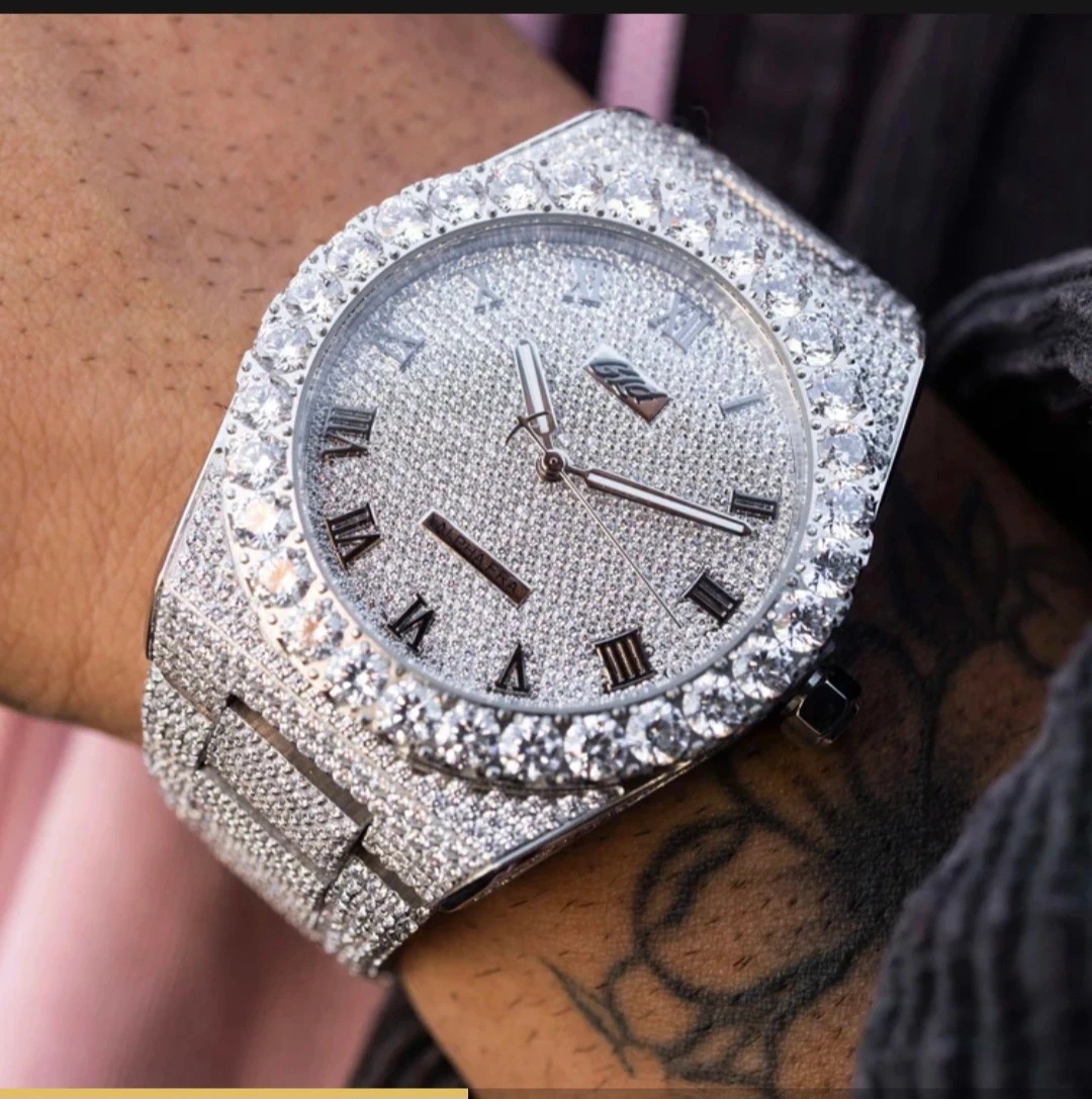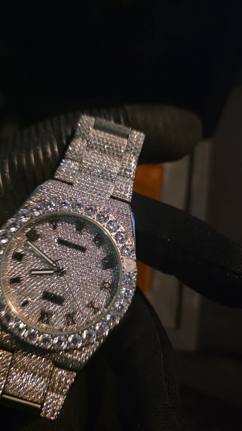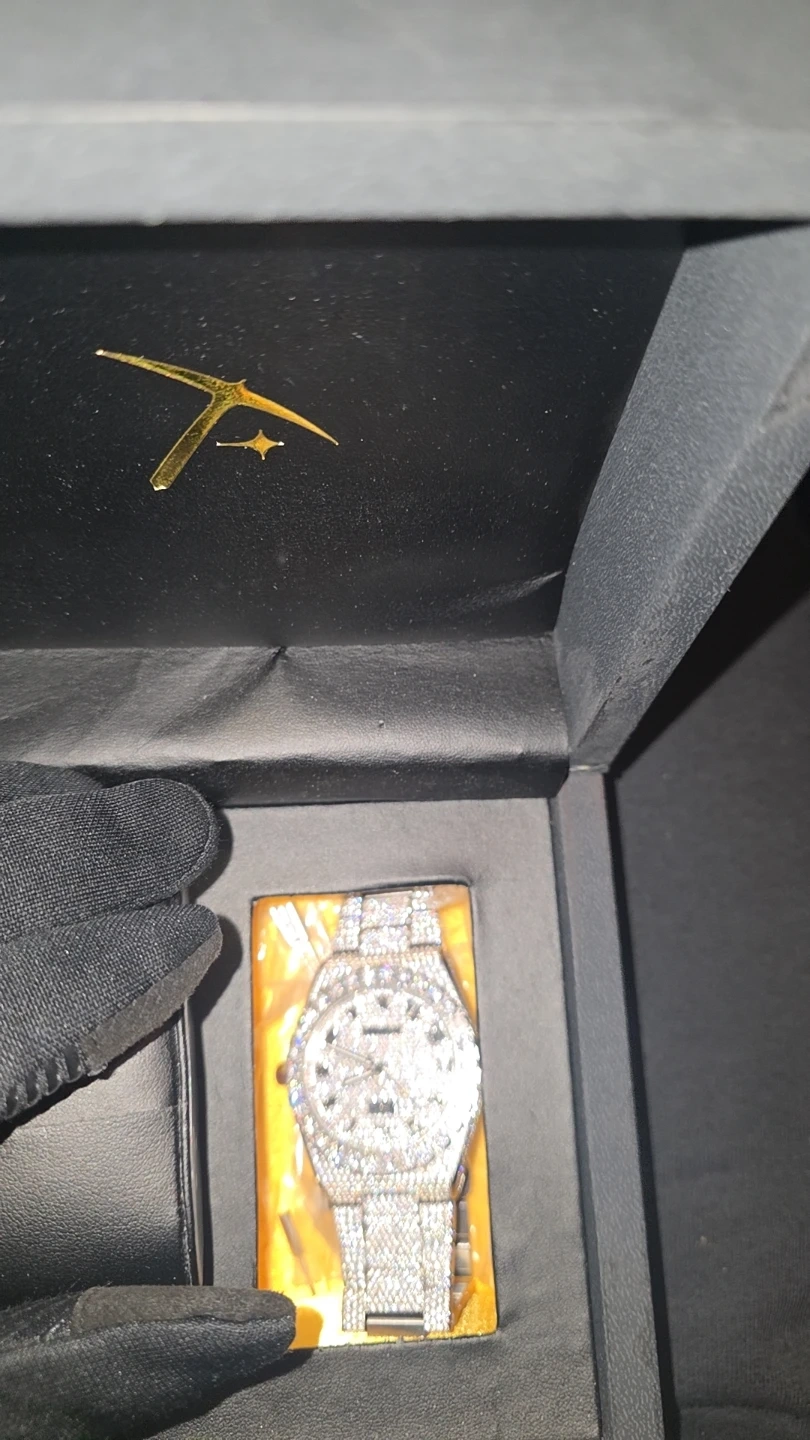 Selling my Gld Iced out CZ stone watch. The watch was worn a little bit and is still in good condition overall. There is a slight dent on one of the stones(4thpicture)and timer isnt working but selling as is. Contact for details and pricing