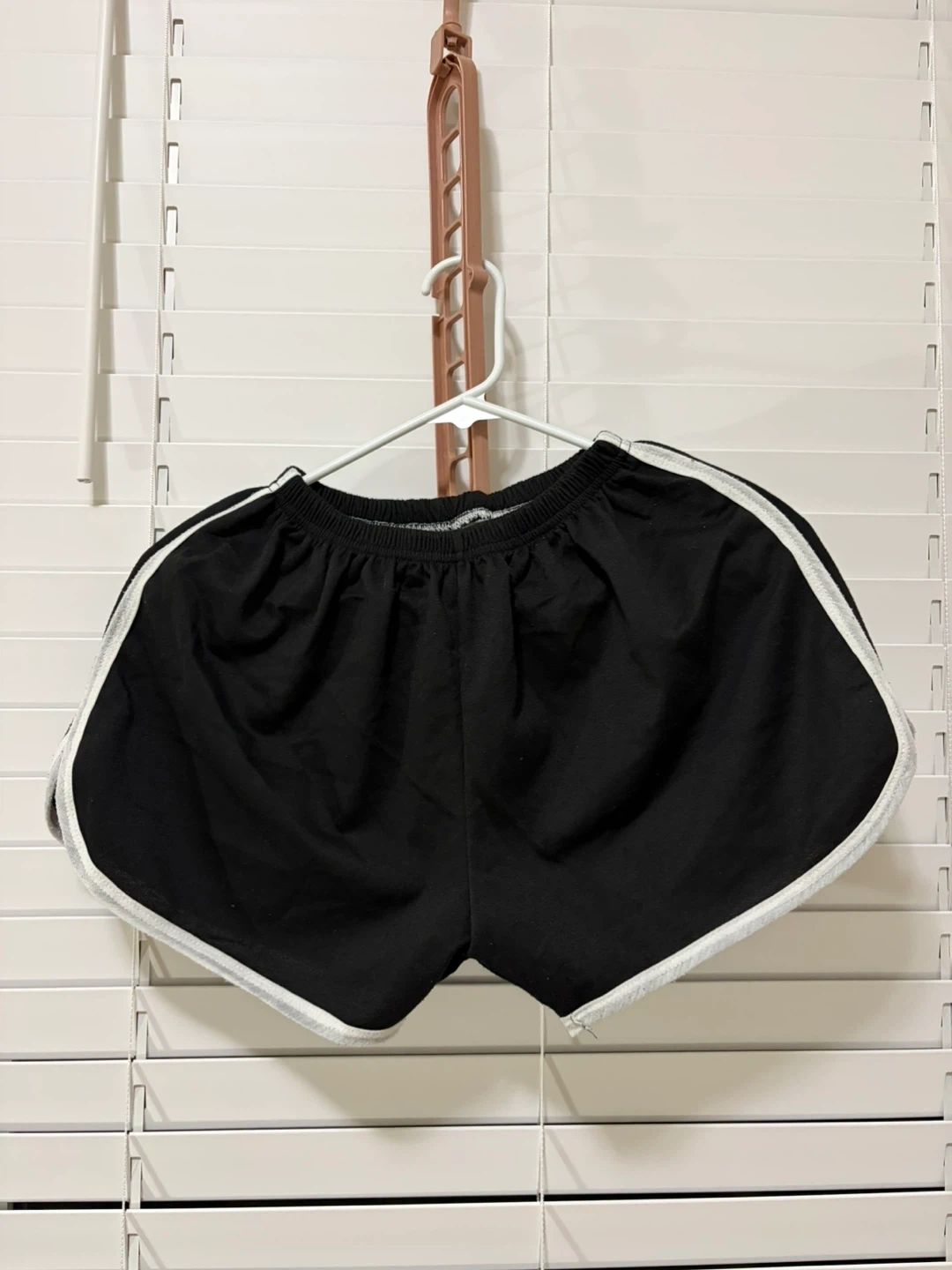 Selling a pair of black athletic shorts with white trim. They look to be in great condition and ready for your next workout or just lounging around the house!