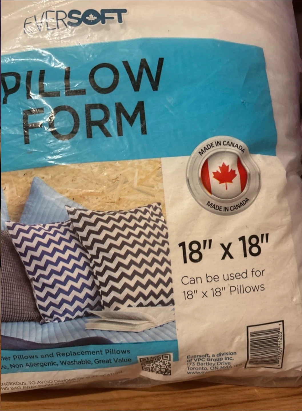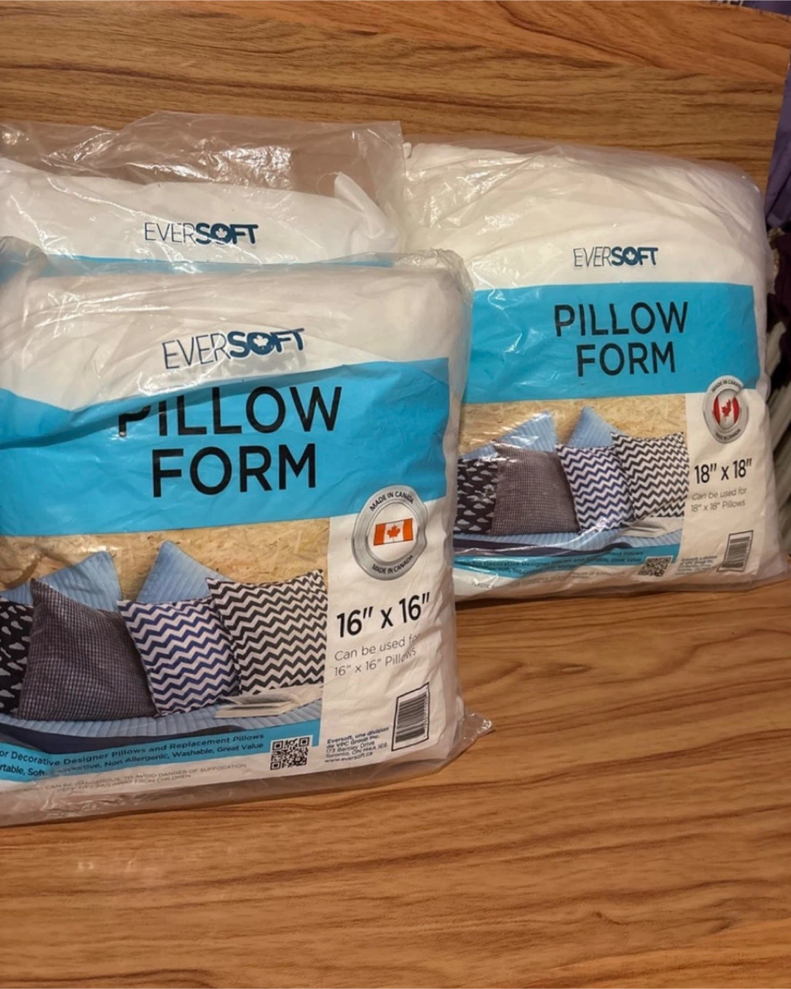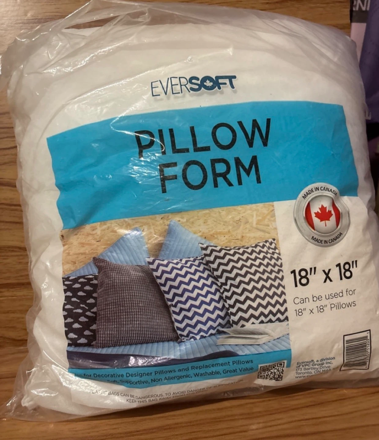 I am selling new Eversoft Pillow Forms, perfect for adding comfort and style to any room. 18" x 18" pillow form and 16" x 16" pillow form, both still sealed in their original packaging. These pillows are made in Canada and are non-allergenic.