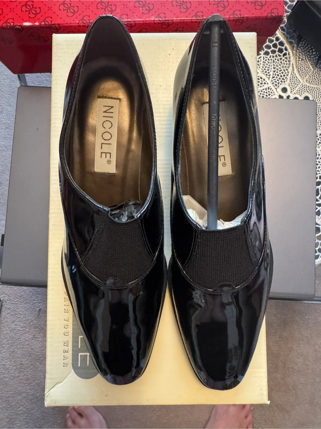 Selling a pair of women’s Nicole shoes in black leather.