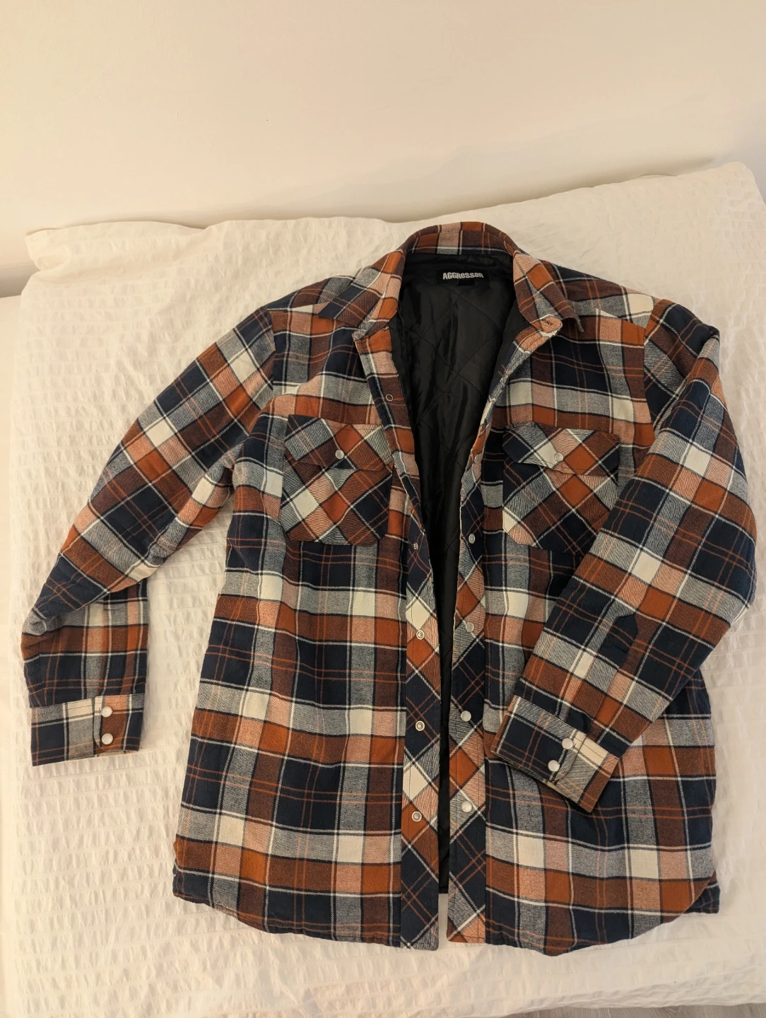 Quilted lining (polyester) and plaid top pattern (cotton)