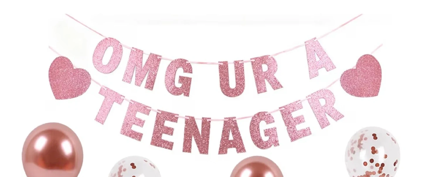 OMG UR A TEENAGER banner and Cake topper.