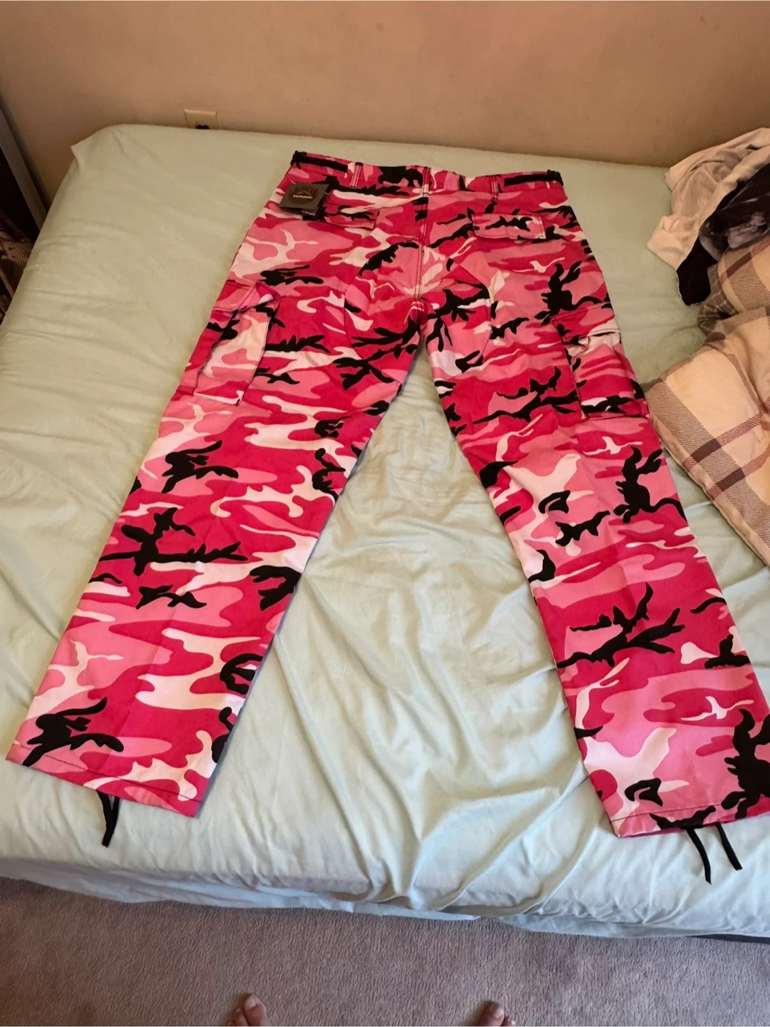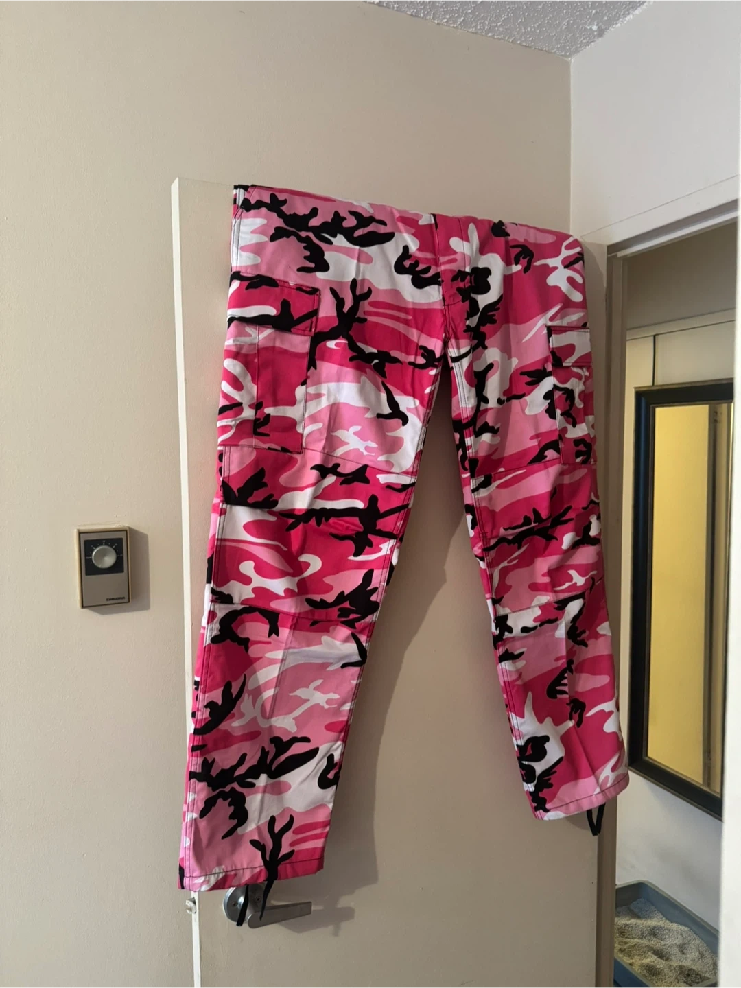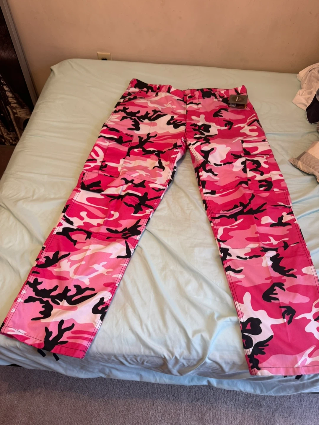 Mens Casual Street Fashion Camo Cargo Pants, Army Combat Military BDU Pants, Work Hunt Pants, Pink Camo, 42W by 32L.