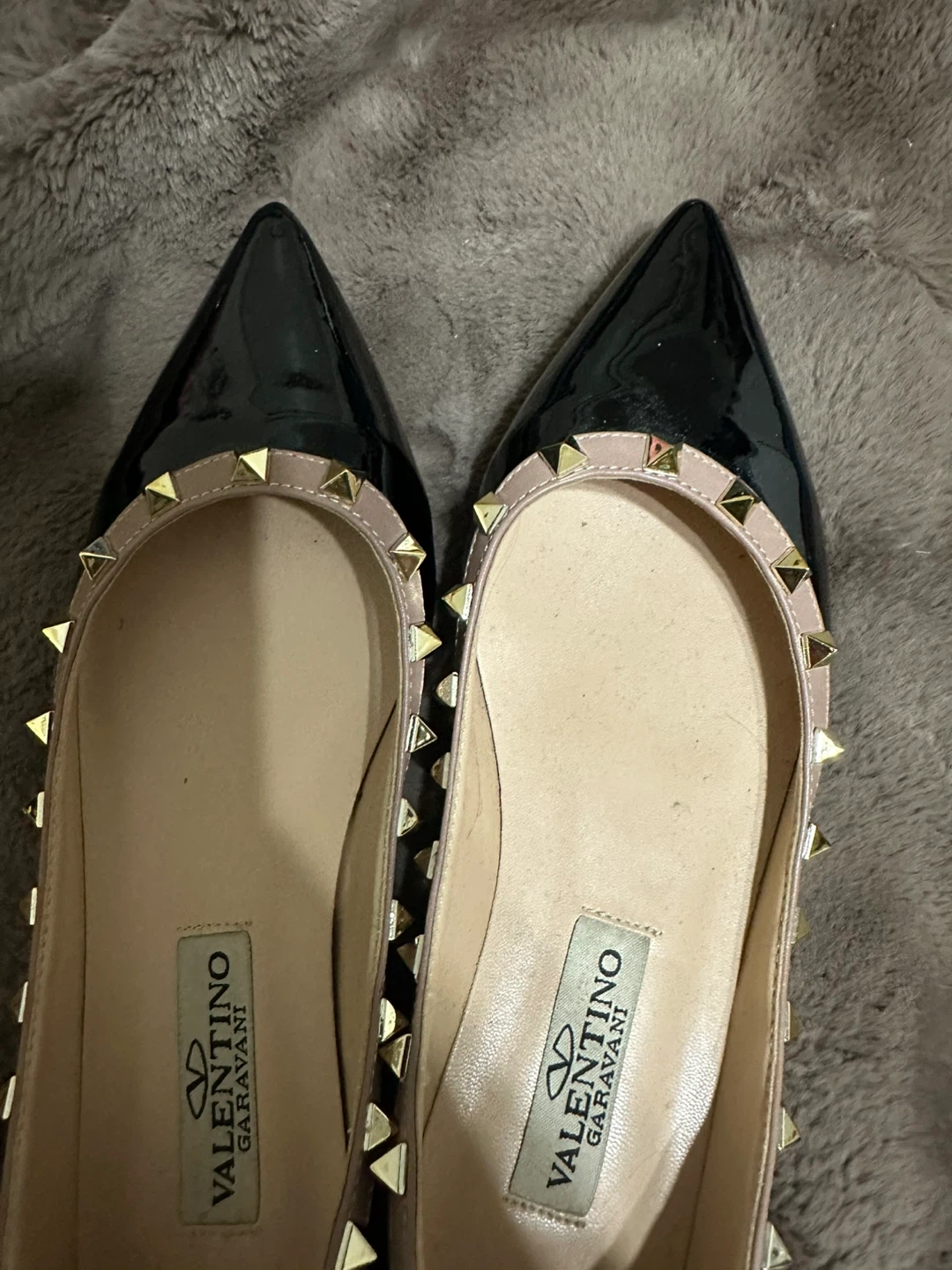 Selling a pair of Rockstud ballerina flats. They're in good condition and feature the iconic Rockstud detailing. Perfect for adding a touch of edgy elegance to any outfit!