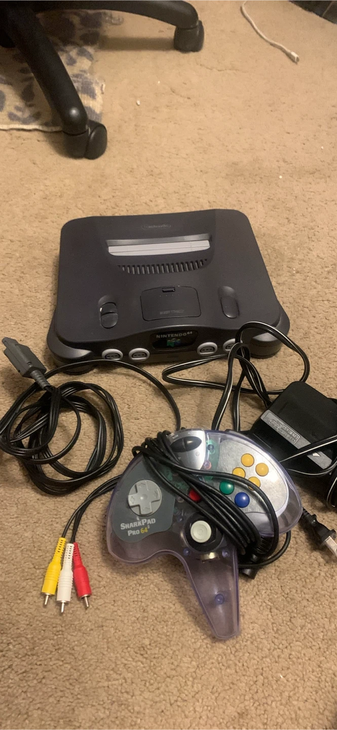 Selling a Nintendo 64 console along with a Sharkpad Pro 64 controller! Perfect for reliving those classic gaming moments. Comes with all the necessary cables to hook it up and start playing. Don't miss out on this retro gaming setup