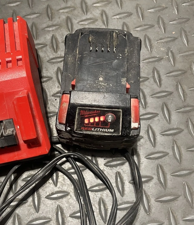 Selling a Milwaukee M18 Red Lithium XC5.0 battery and charger in used condition, perfect for powering your tools.