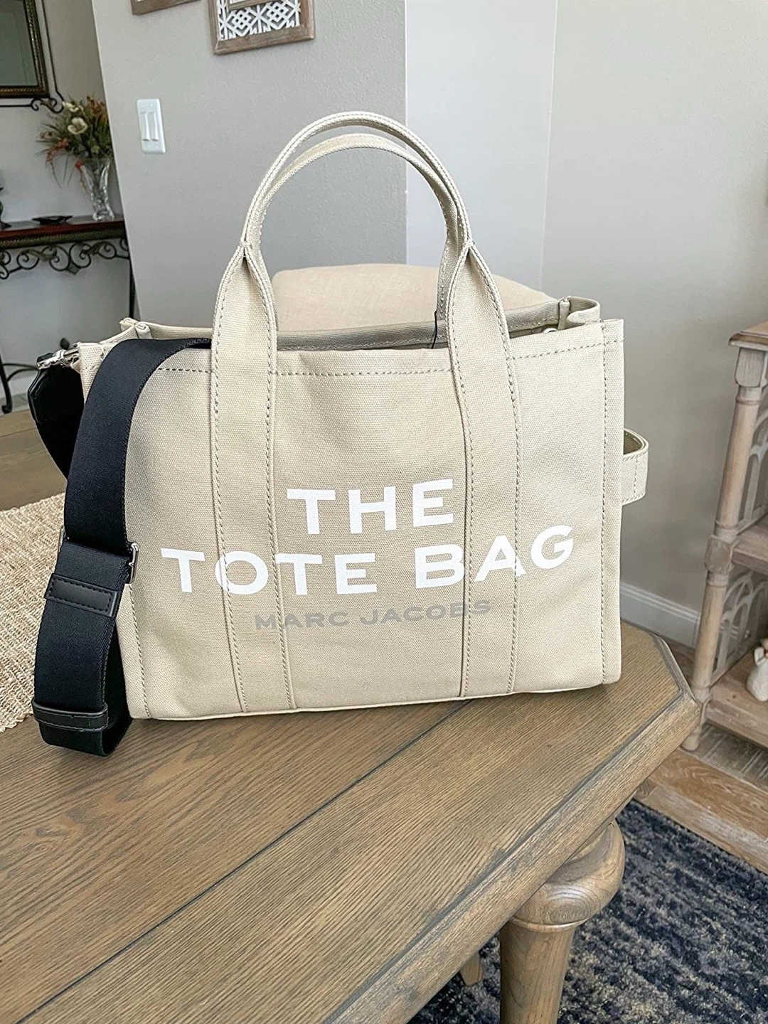 Selling a small sized Marc Jacobs : The Tote Bag in a lovely beige colour! It features a black shoulder strap. Great for everyday use and carrying your essentials. Feel free to ask any questions!