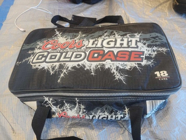 Keep your drinks cool with this used Coors Light Cold Case, perfect for 18 cans. Whether you're heading to a tailgate or a picnic, this cooler bag is an awesome way to show off your Coors Light pride! It's been on a few adventures, but it's still got plenty of life left.