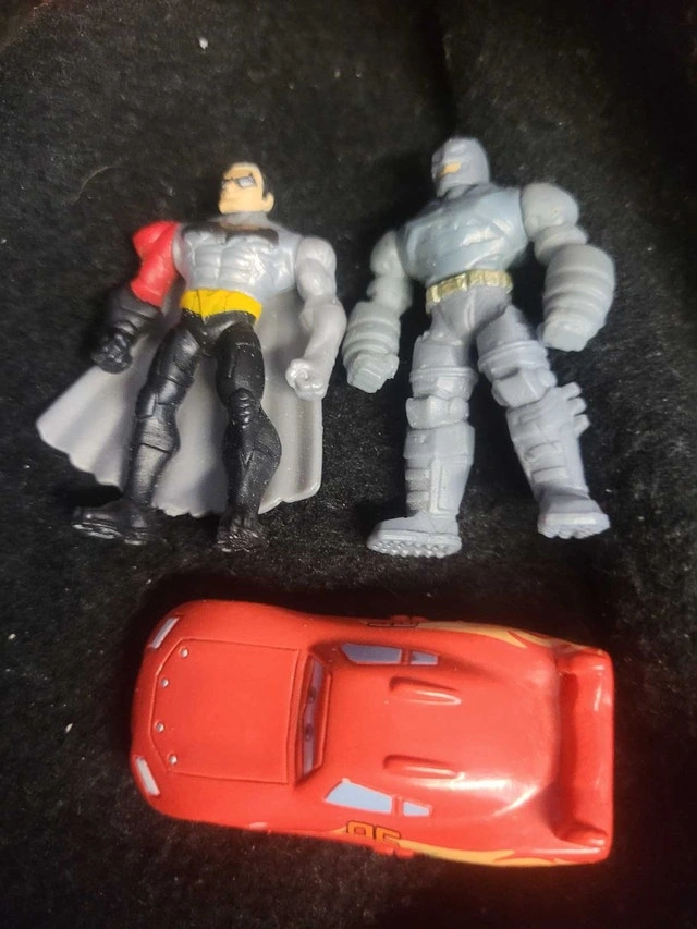 I'm selling a set of used Batman action figures, including Batman in armour and Robin. These figures show signs of play but are still in good condition for display or play. A great addition to any collection! If the ad is still up, these dynamic figures are ready for a new adventure in your collection!