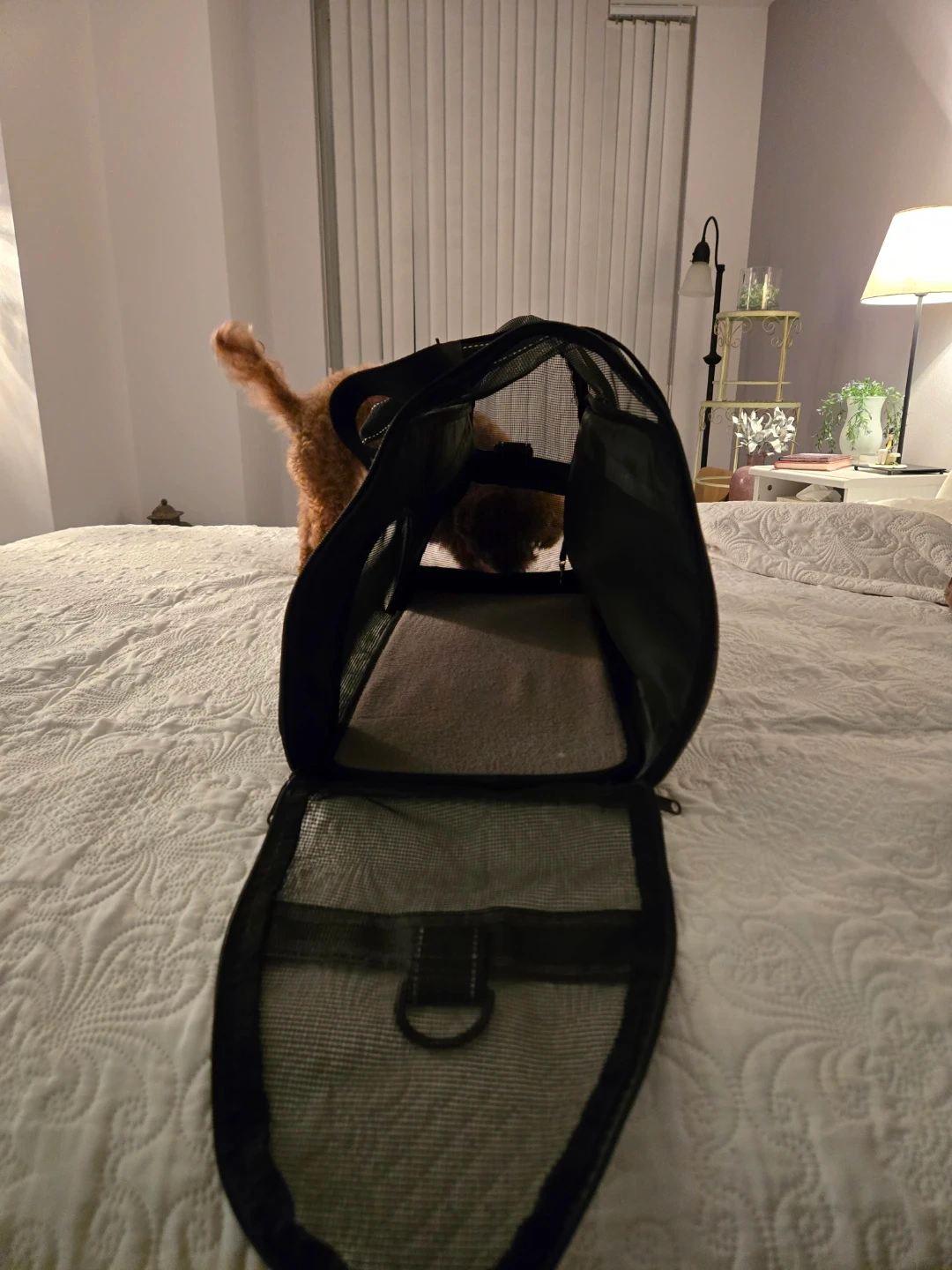 Dogline pet carrier in great condition! It's a stylish and practical way to bring your furry friend with you. The carrier is grey with black accents and has mesh windows for ventilation. Perfect for small dogs or cats! My dog loved it - as shown in the pictures:)