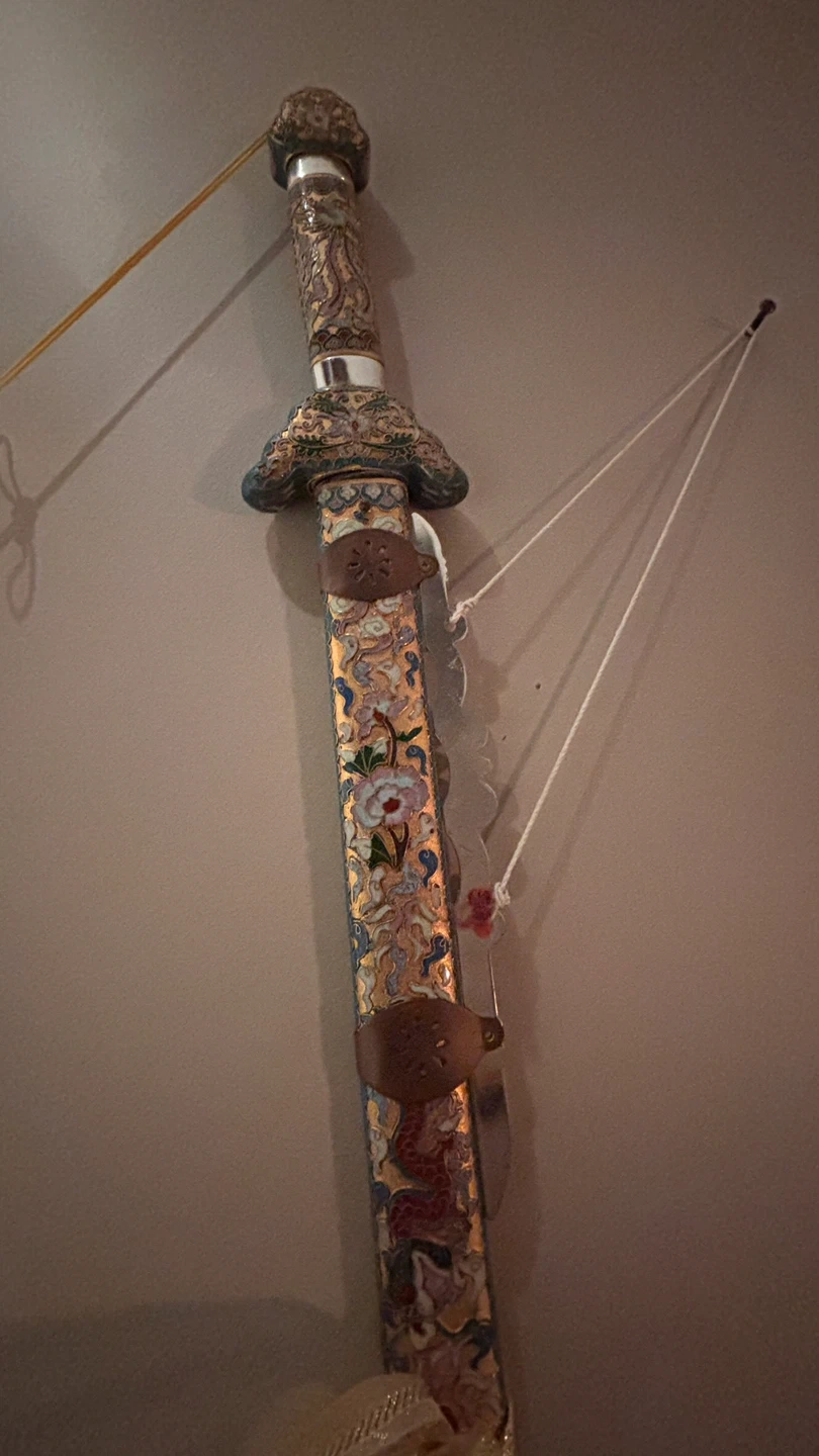Beautiful decorative sword, perfect for adding a touch of elegance to your home decor! It features intricate details and a lovely design, making it a unique piece for display. 29” blade