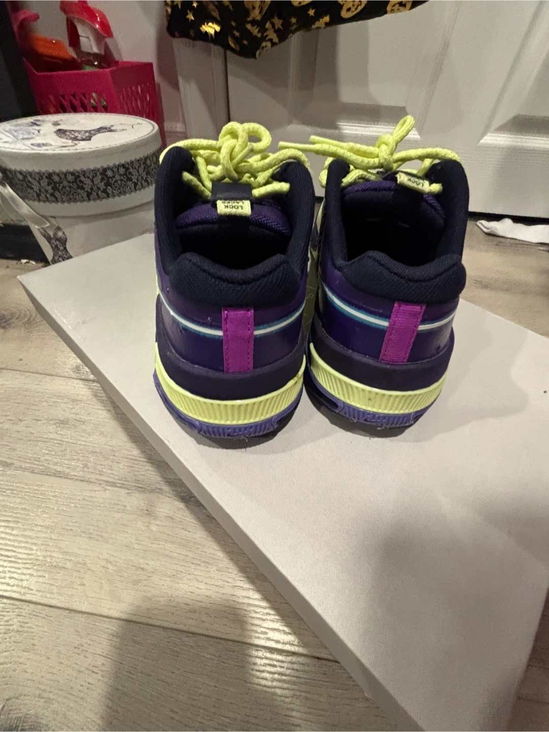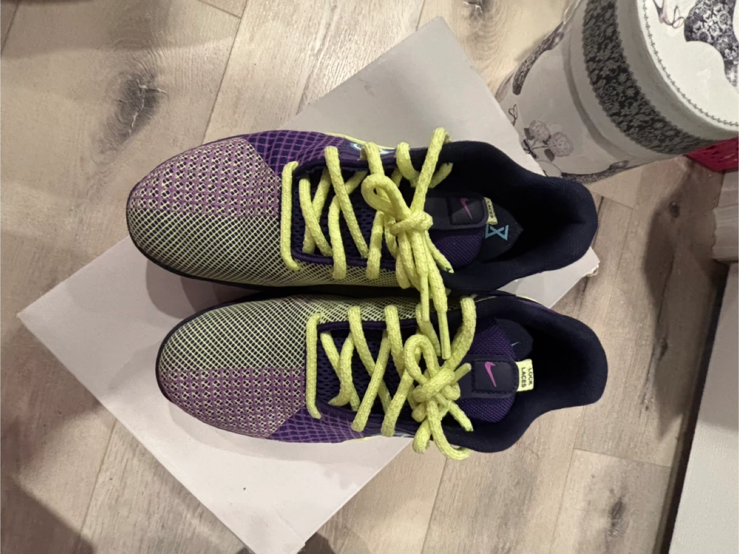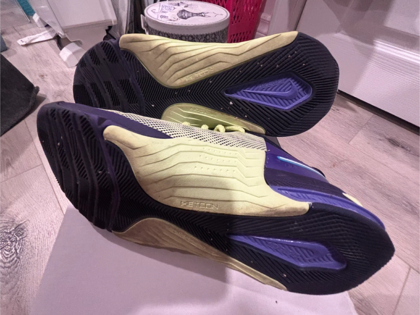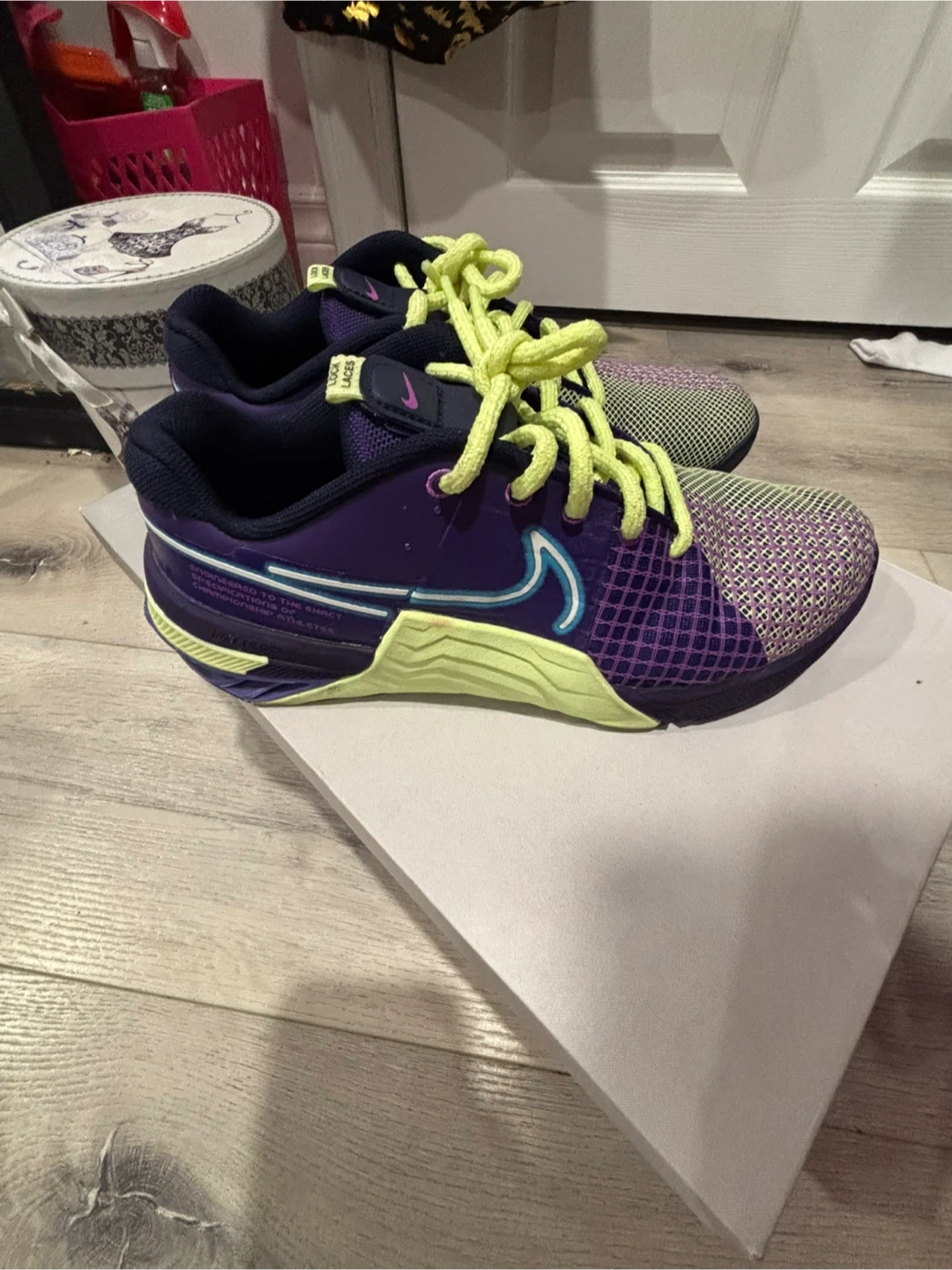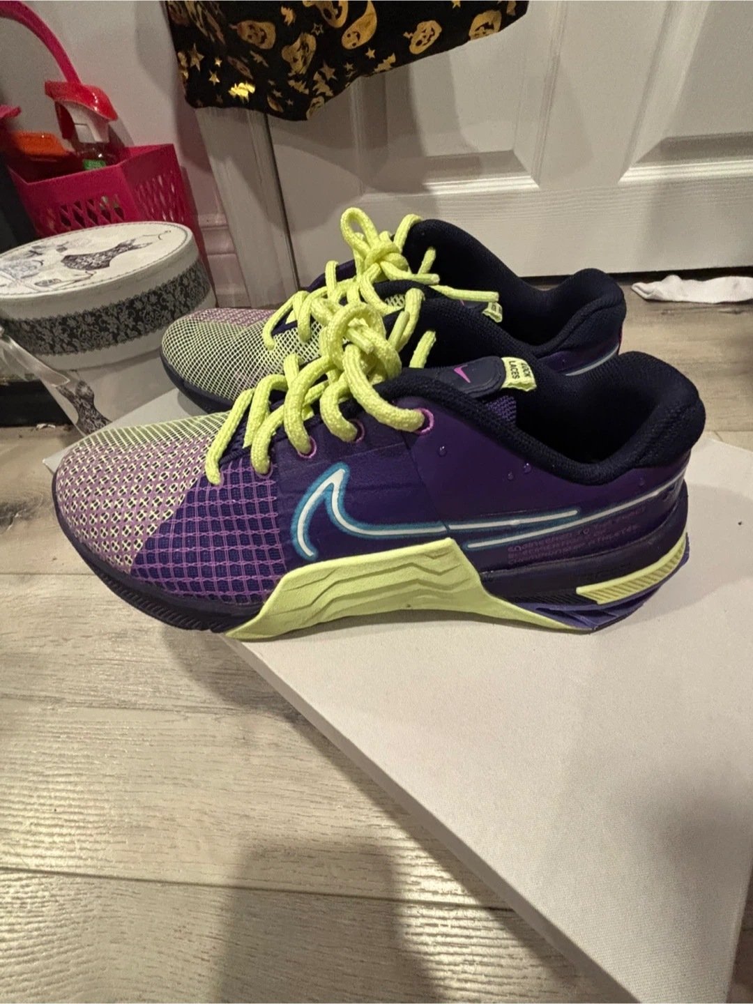 Selling a pair of Nike Metcon 9 training shoes in a striking purple and green colour combo! These shoes are designed for high-intensity workouts and provide excellent support and stability. They are iready for your next training session