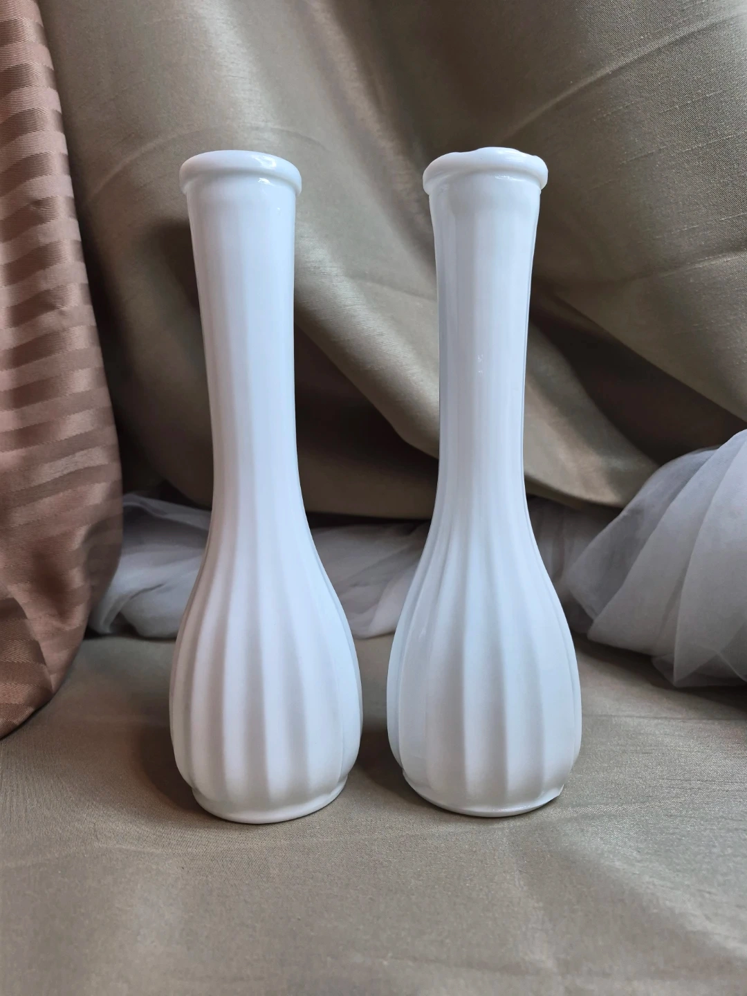 2 Beautiful 8 3/4" Tall Vintage White Milk Glass Vases - Milk Glass Vase - Tall Milk Glass Vase - Collectible Milk Glass Vase