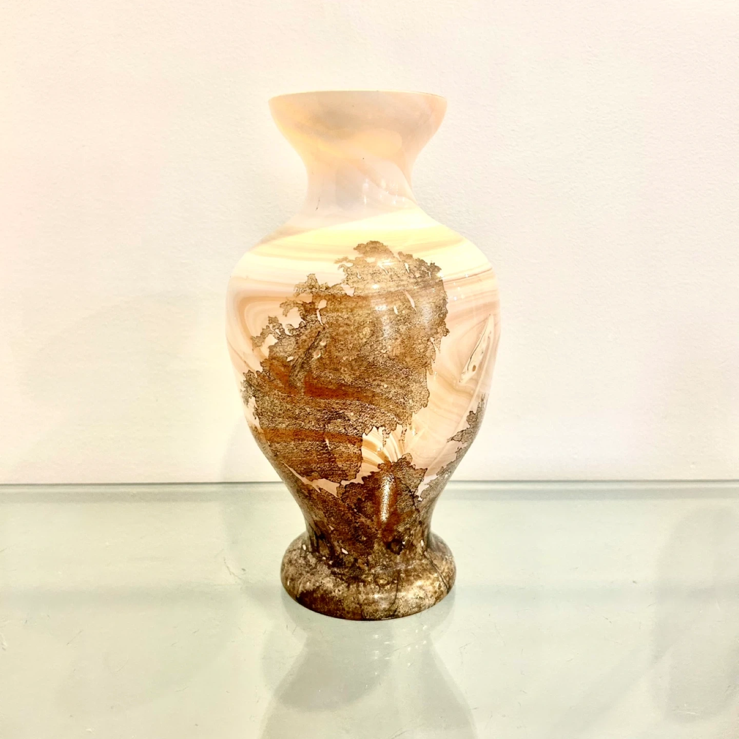 • Natural, stone-like color patterns (often referred to as agate, onyx, or marbled glass)