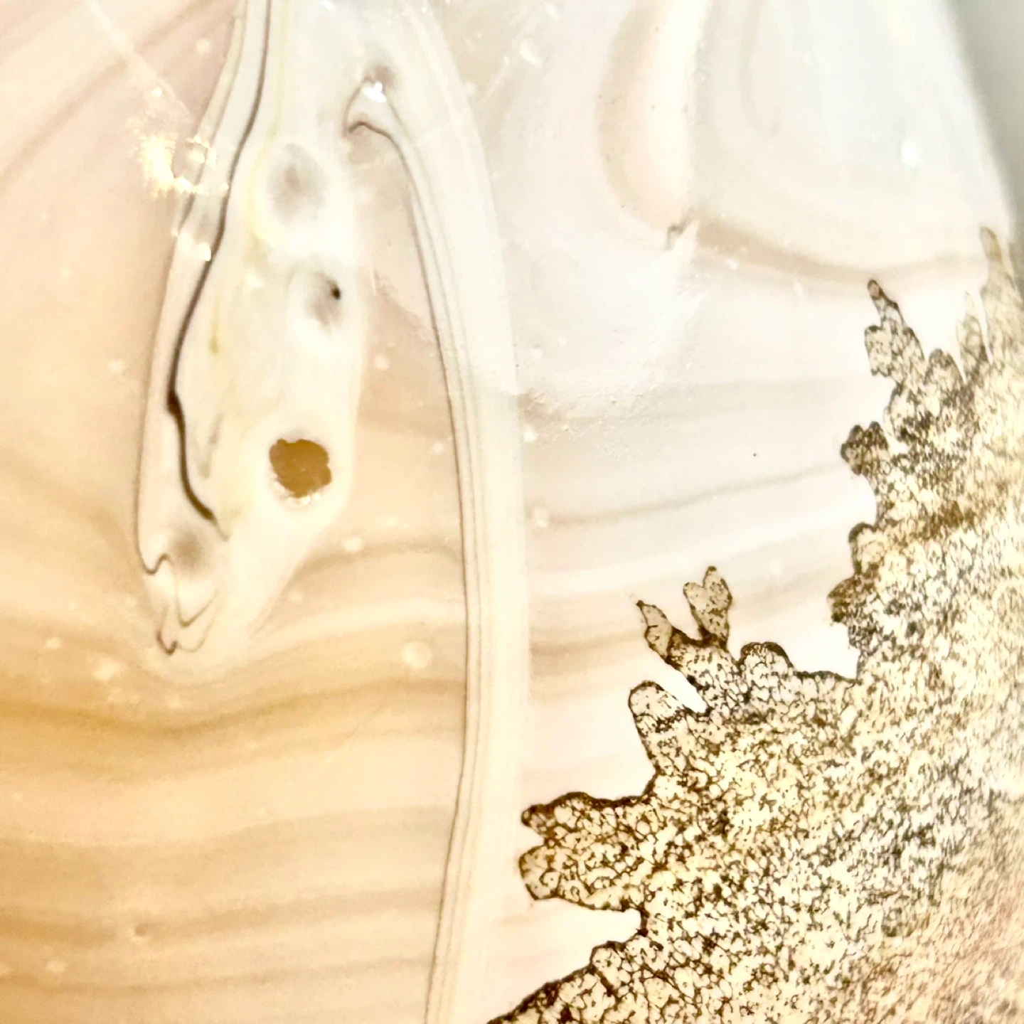 • Finish: High gloss with visible swirling striations and organic inclusions