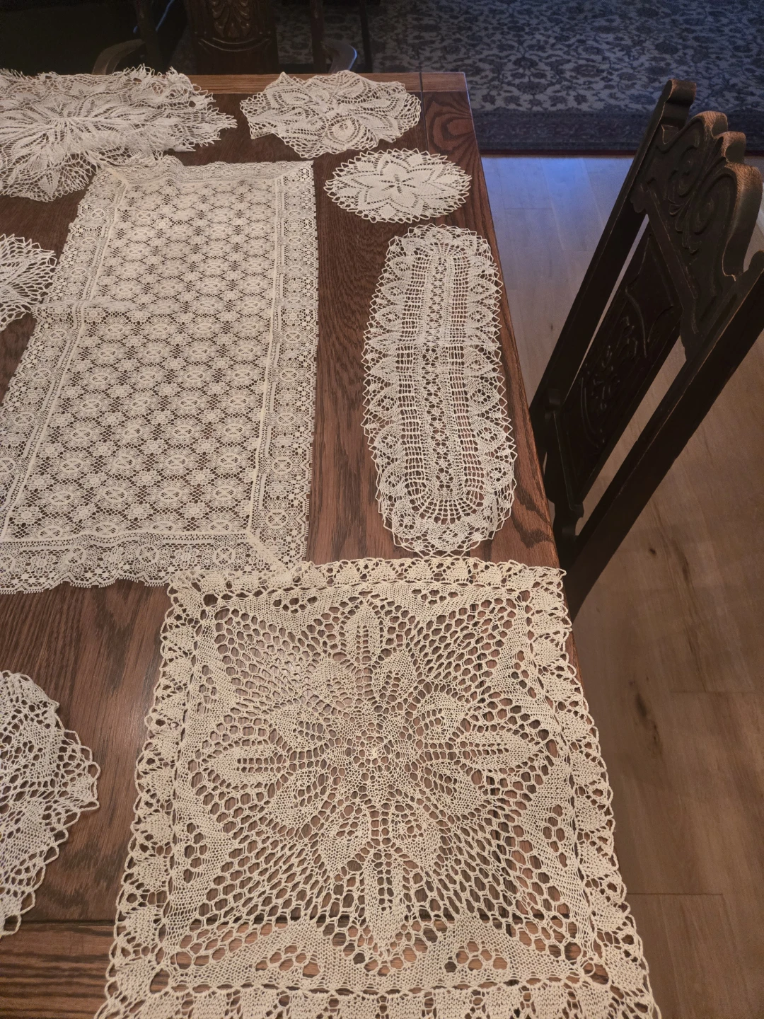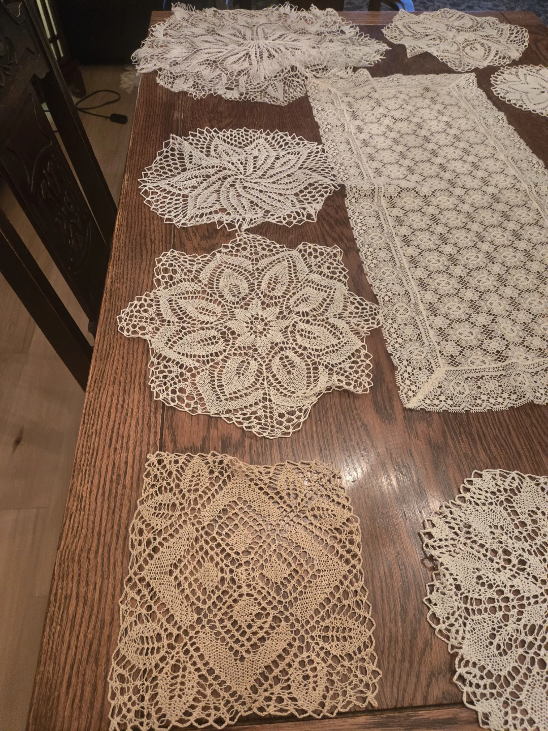 Selling a collection of vintage crochet lace doilies. These delicate pieces would add a touch of timeless elegance to any home. Perfect for dressing up a table or adding a vintage touch to your decor.
