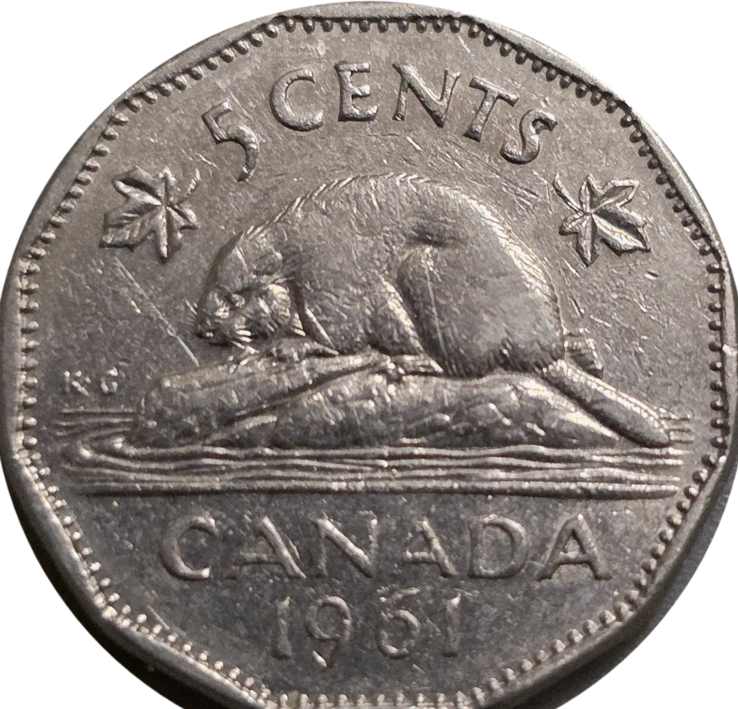 1961 Canadian 5-Cent Beaver nickel. This is a standard circulation coin featuring a beaver on the reverse side, a design by G. E. Kruger-Gray.