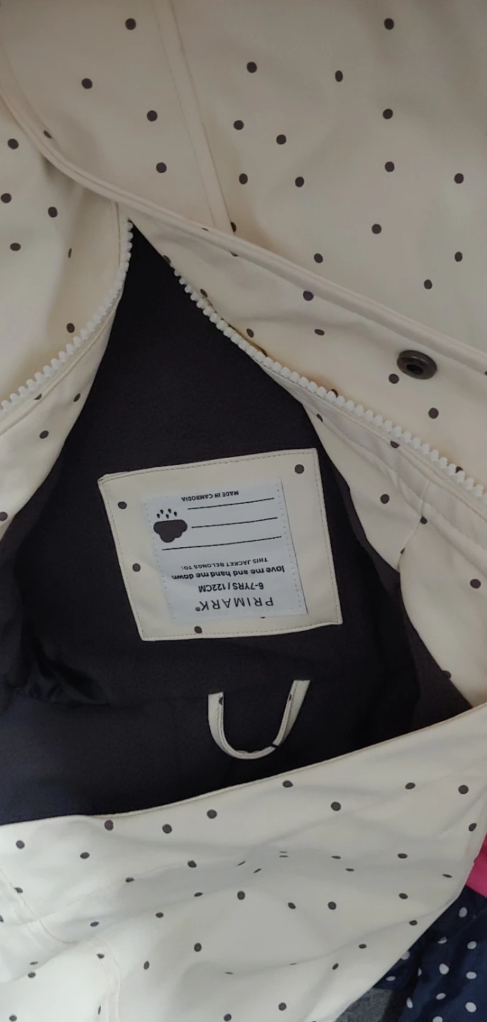 Selling a cute Primark rain jacket for kids! It's a size 6-7 years and features a fun polka dot pattern. Perfect for keeping your little one dry on windy, snowy,rainy days