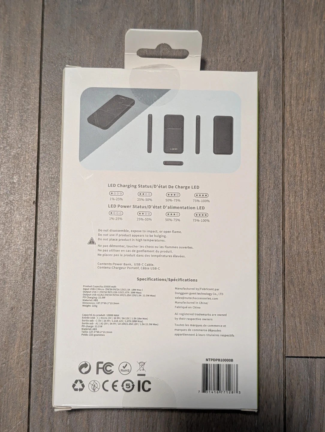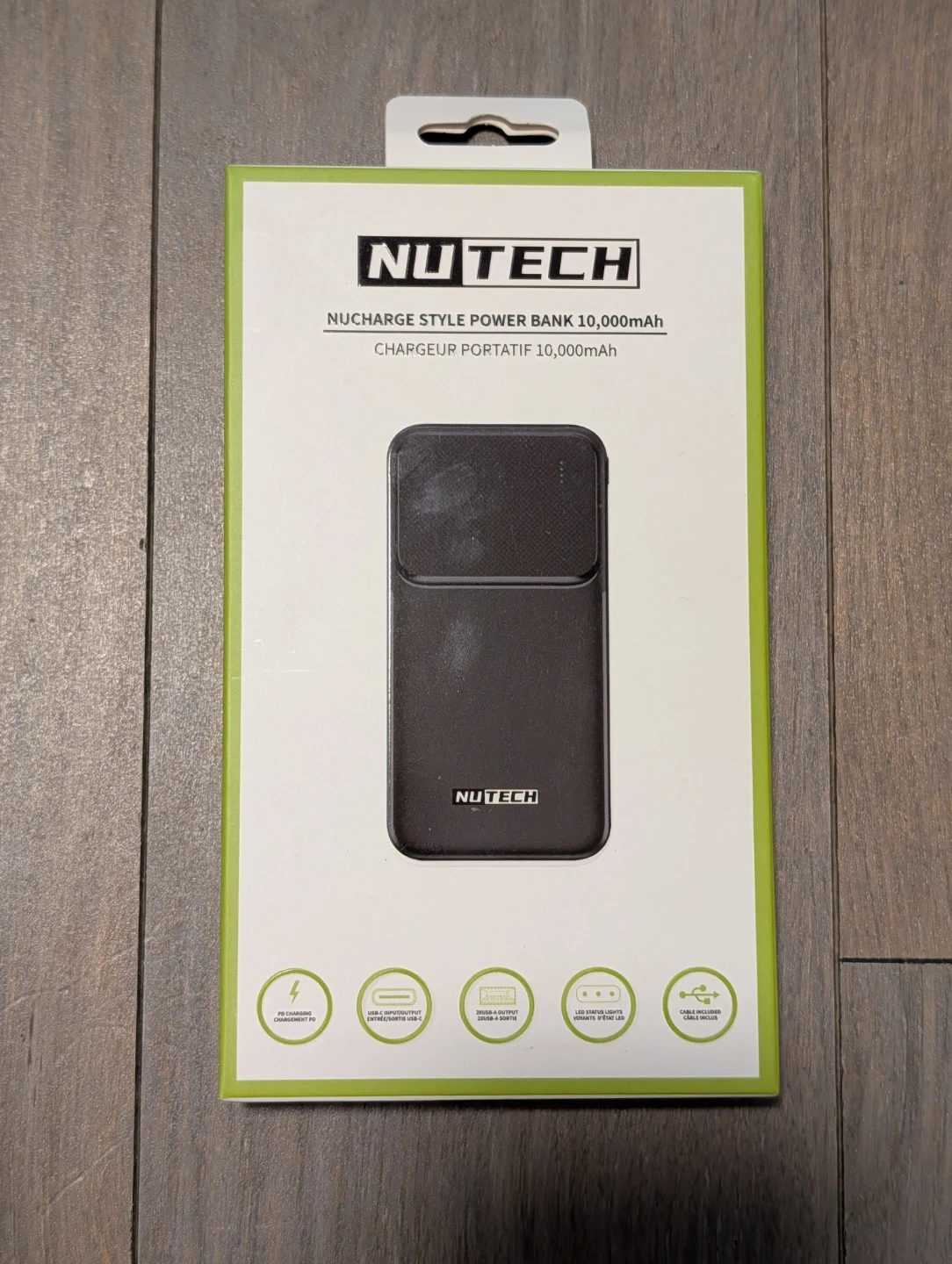 Selling a Nutech Nucharge Style Power Bank with 10000mAh capacity! This portable charger is perfect for on-the-go use. It features LED charging status indicators and comes with a USB-C cable. The box is included