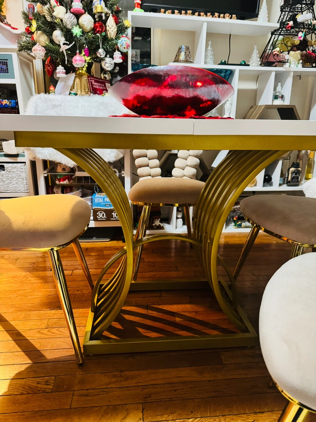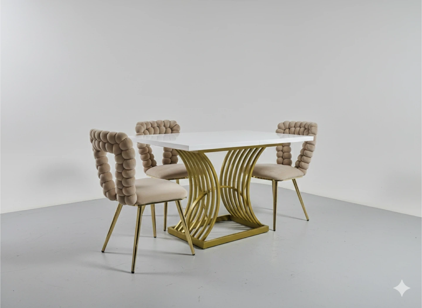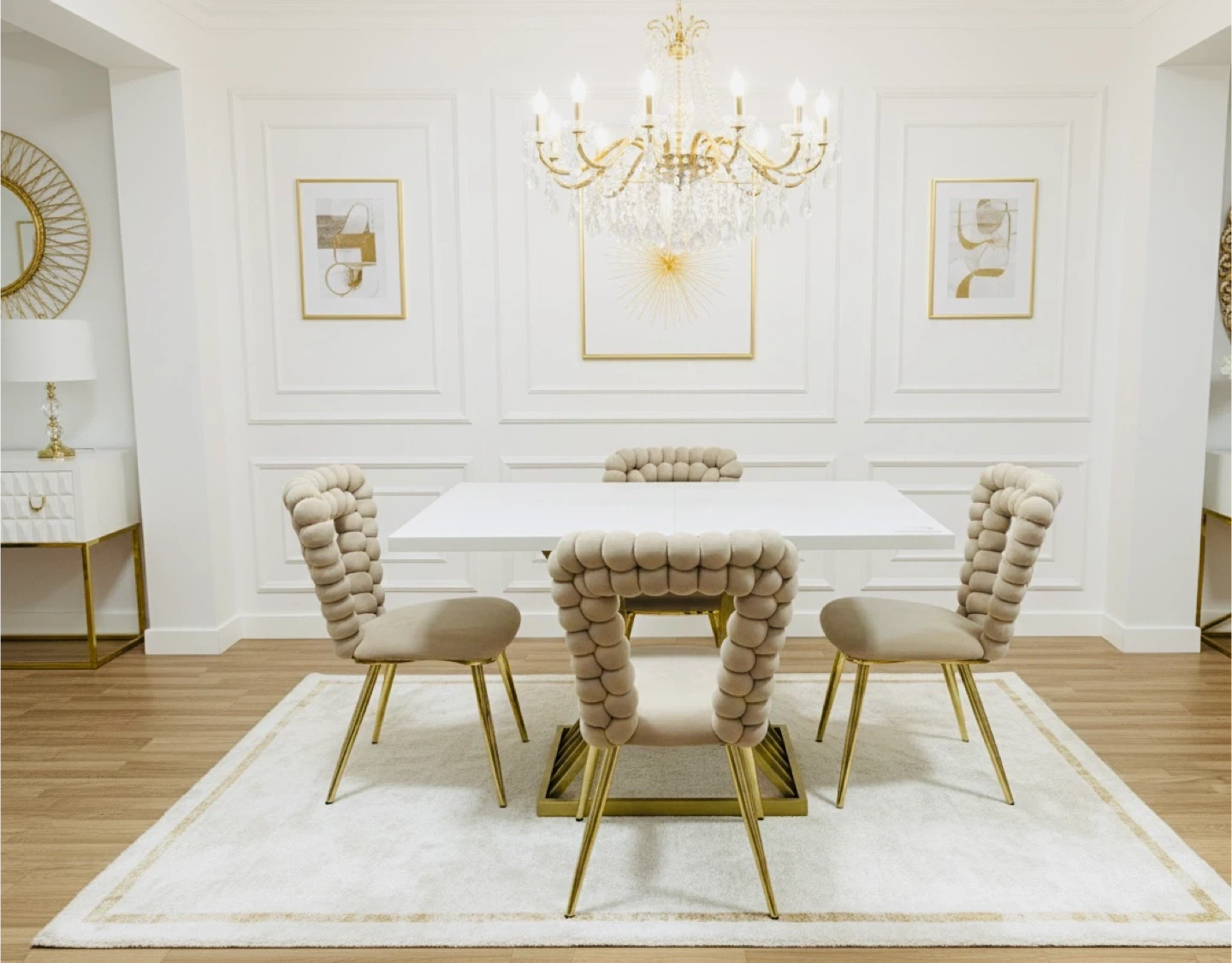 New!! Dining Table with 4 Chairs - Gold/White