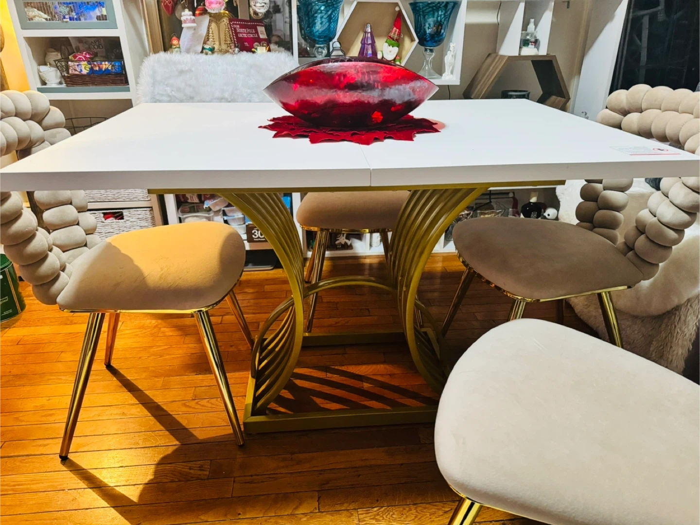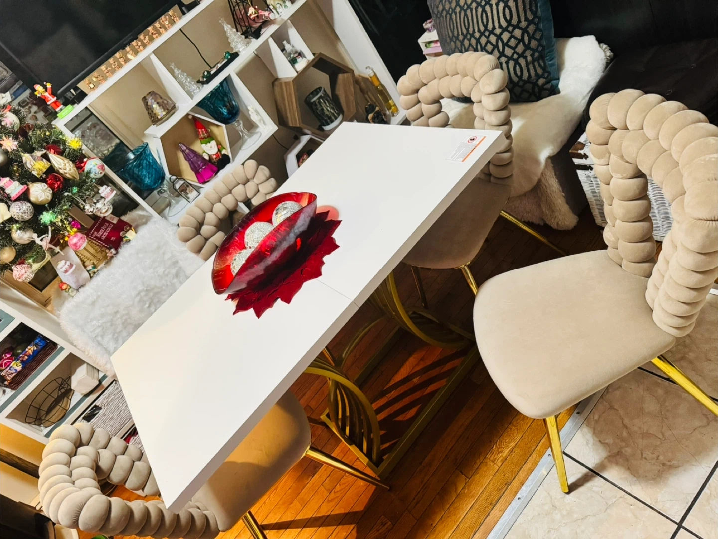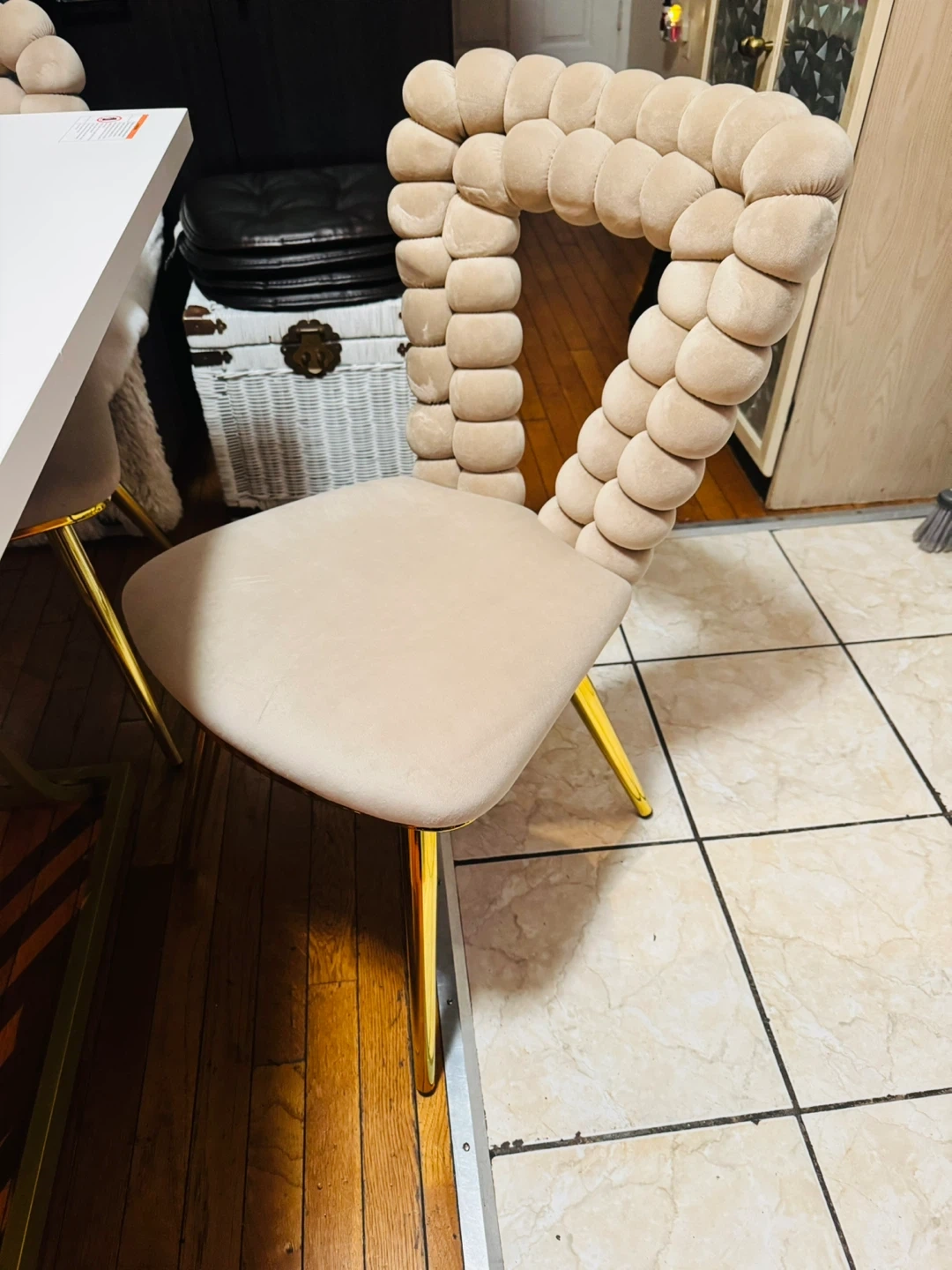 Selling a dining table with unique bubble chairs! The chairs have a stylish design with a soft, textured feel and gold legs. They'd be a great addition to any dining room. You can pay with cash or credit card. Easy to transport. Ready for pickup in Jamaica Hills 11432. Don't miss this opportunity to add an elegant and modern touch to your home.