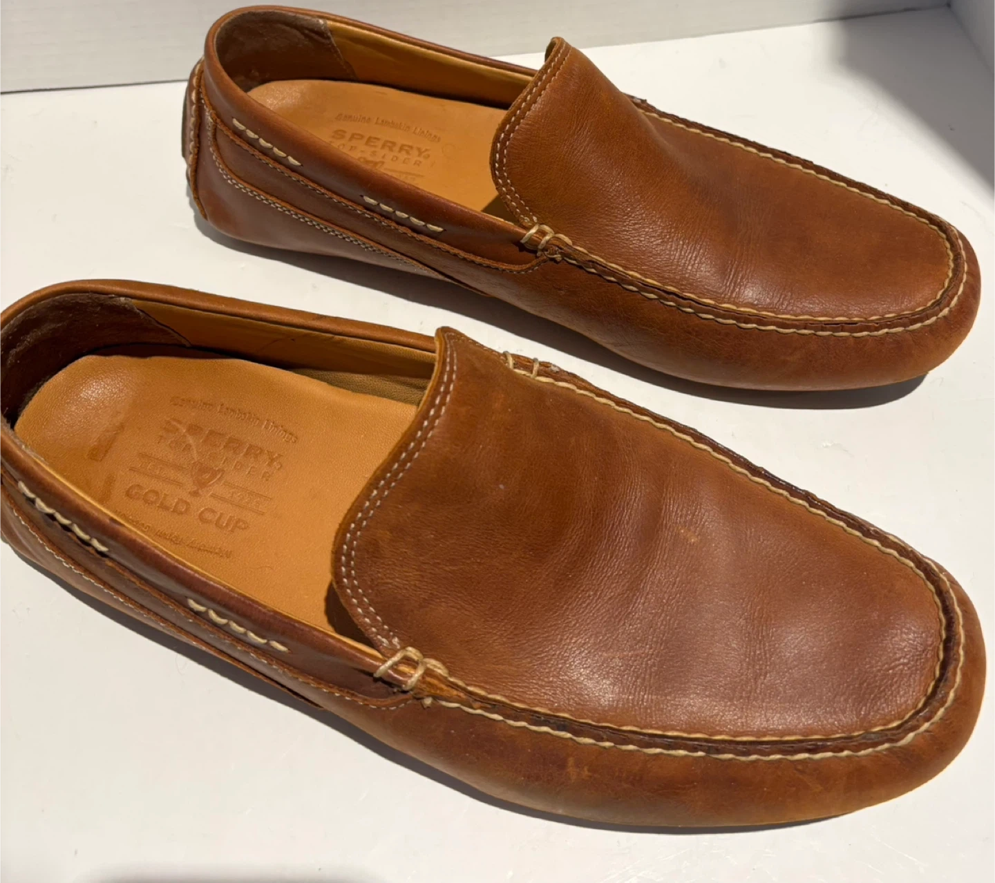 Selling a pair of Sperry Gold Cup loafers in a lovely brown leather! These are super comfortable and stylish, perfect for everyday wear. They show some signs of wear but have plenty of life left in them