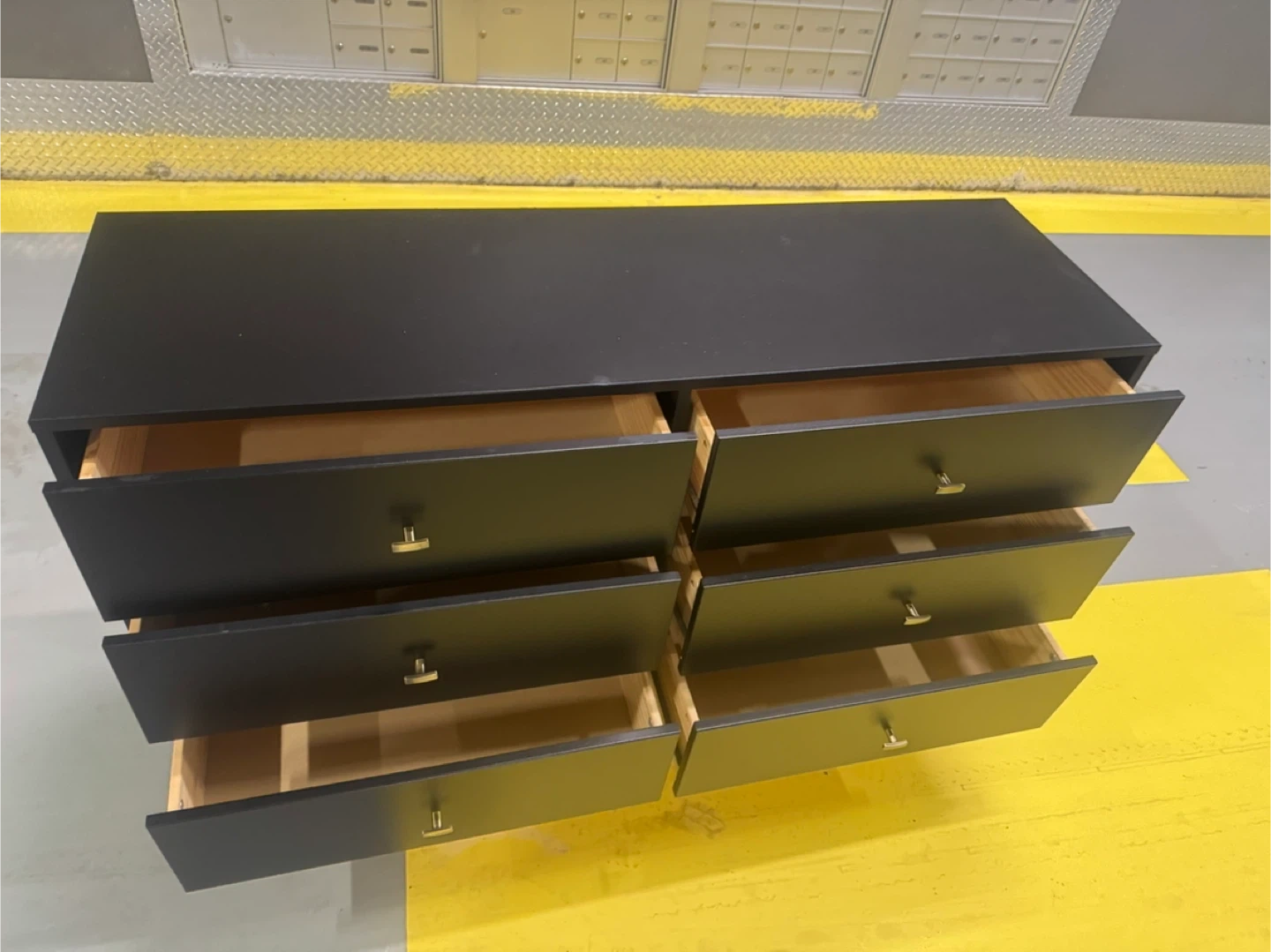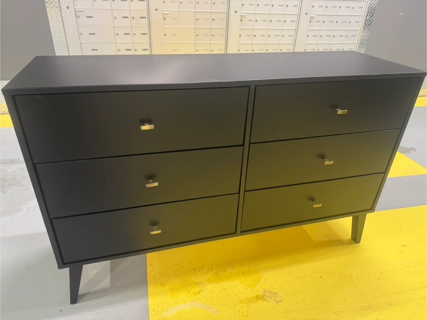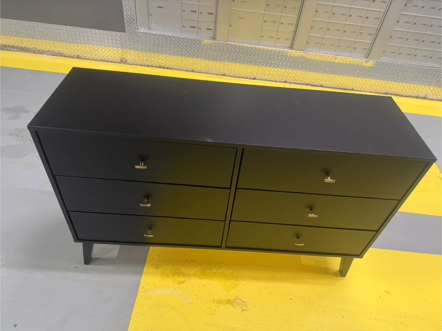 Selling a black dresser with six drawers. It's in great condition and ready for a new home! Perfect for adding storage to any bedroom or living space, this dresser offers ample room for clothes and other items home delivery available