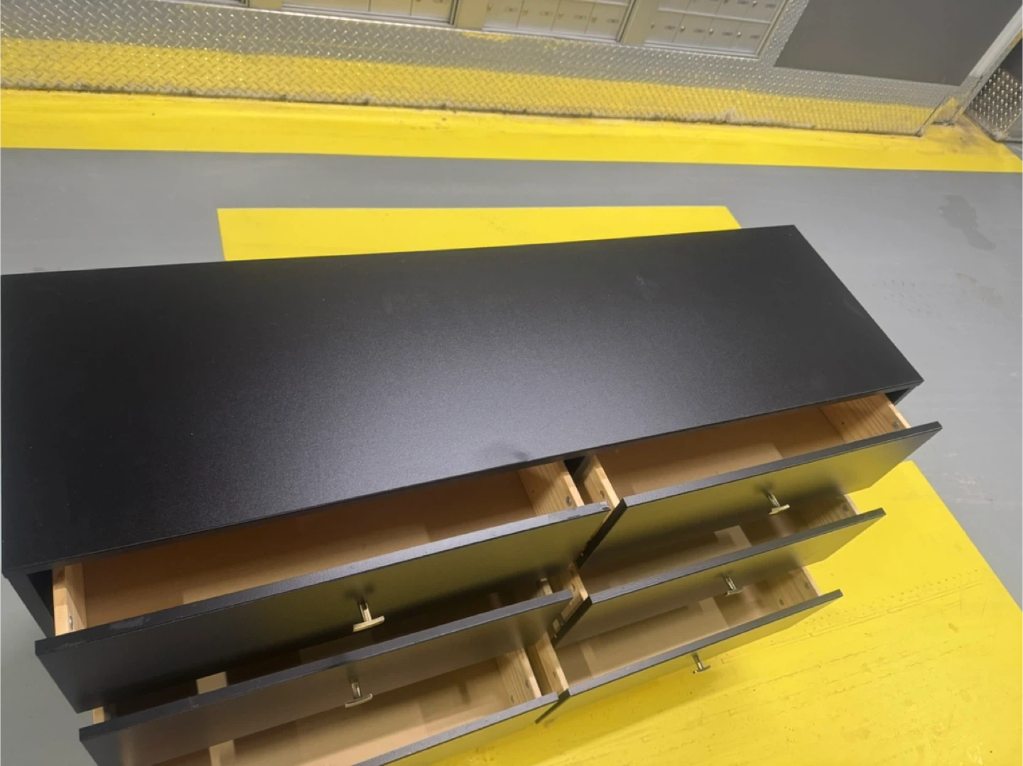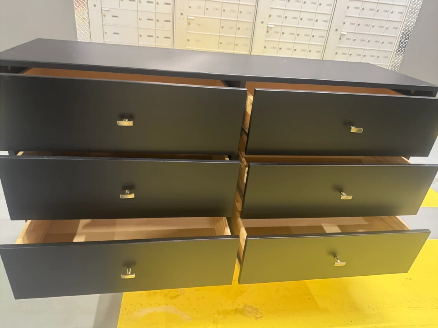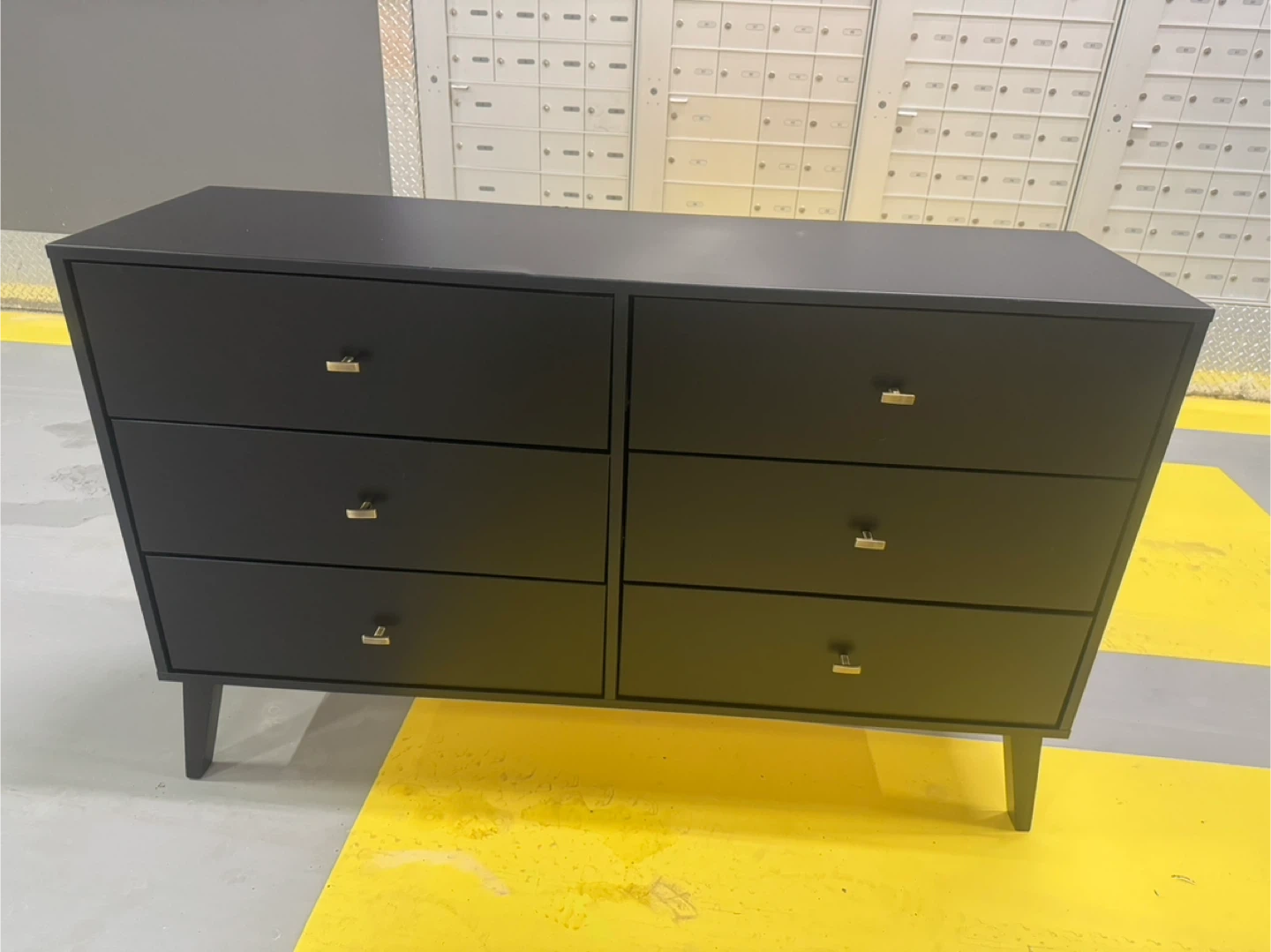 Selling a black dresser with six drawers. It's in great condition and ready for a new home! Perfect for adding storage to any bedroom or living space, this dresser offers ample room for clothes and other items home delivery available