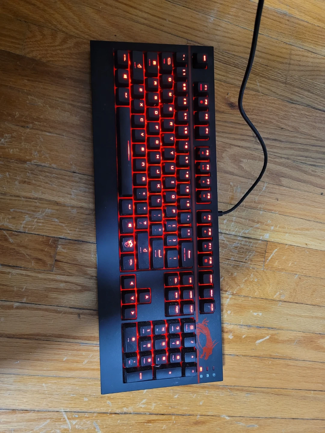 Selling a MSI Vigor GK50 Elite mechanical keyboard. It features a black design with red backlighting. Great for gaming or everyday use!