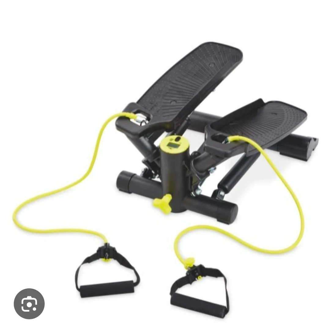 Get a great workout at home with this mini stepper! It comes with resistance bands for a full-body workout. Compact and easy to store, it's perfect for small spaces. It's in good condition.
