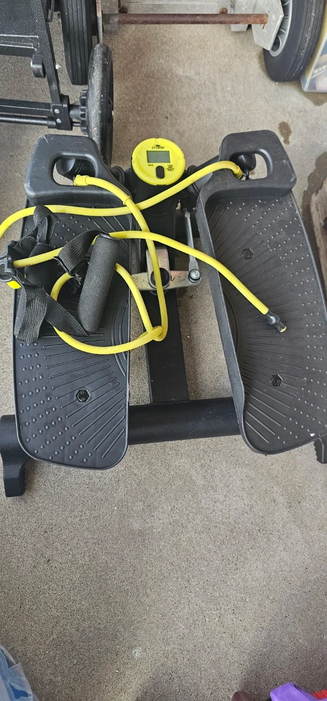 Get a great workout at home with this mini stepper! It comes with resistance bands for a full-body workout. Compact and easy to store, it's perfect for small spaces. It's in good condition.