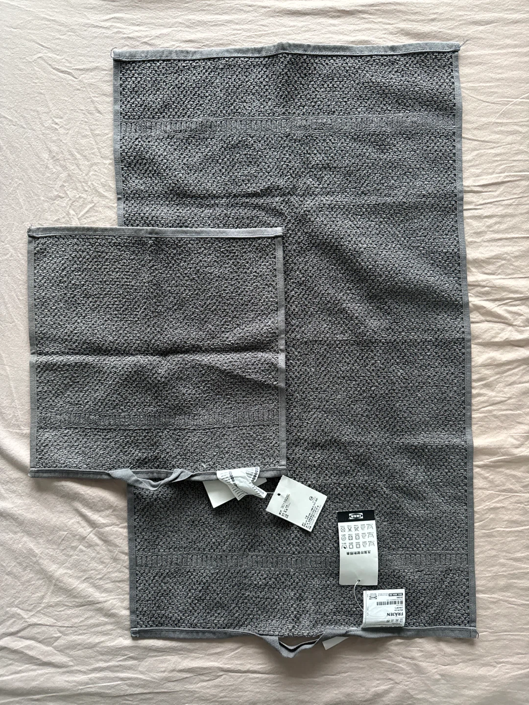 Selling a brand new set of IKEA Frajen hand towels in grey!