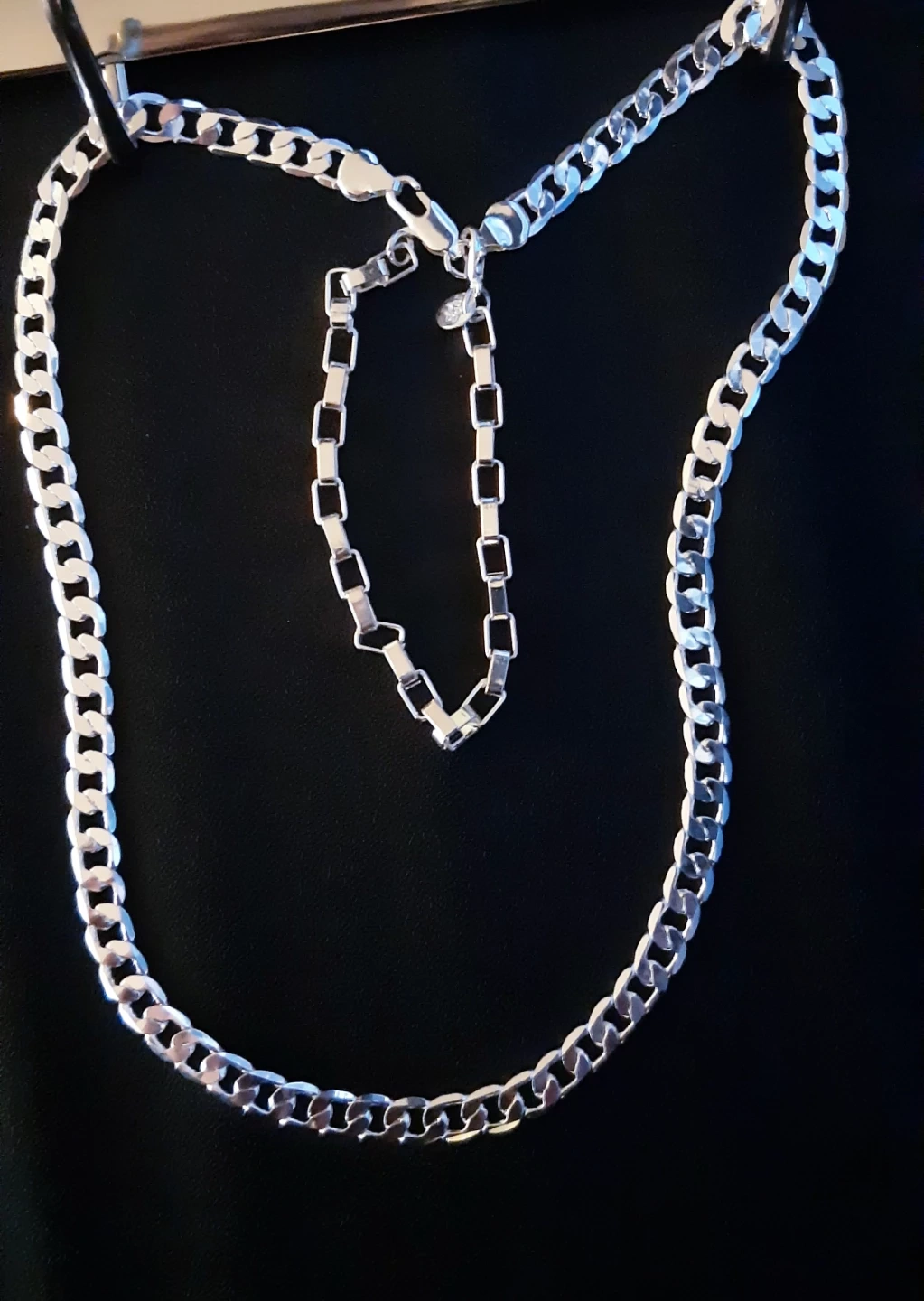 Selling a 925 sterling silver chain necklace and bracelet for men .Perfect for adding a touch of style to any outfit!