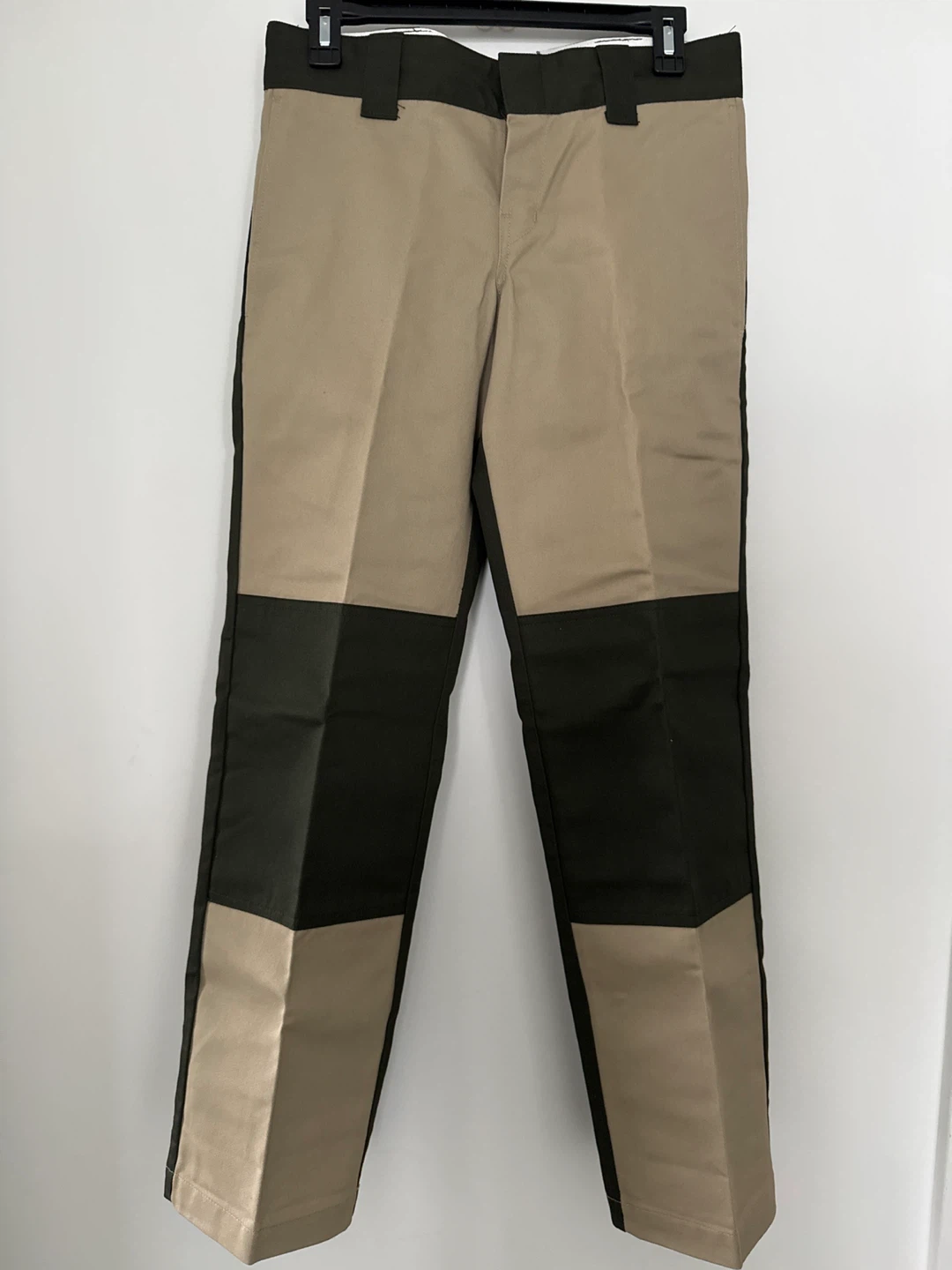 The material is heavy khaki, with blend of 65% polyester and 35% cotton