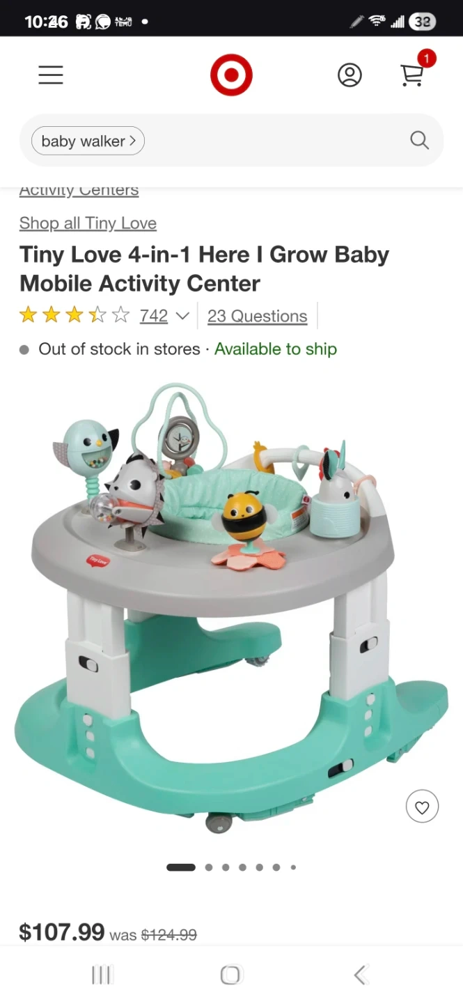Selling a Tiny Love 4-in-1 Here I Grow Baby Mobile Activity Center! It's in great condition and ready for a new little one. The seat pad is removable for easy cleaning, which is super convenient. This activity center provides lots of fun and developmental activities for your baby!