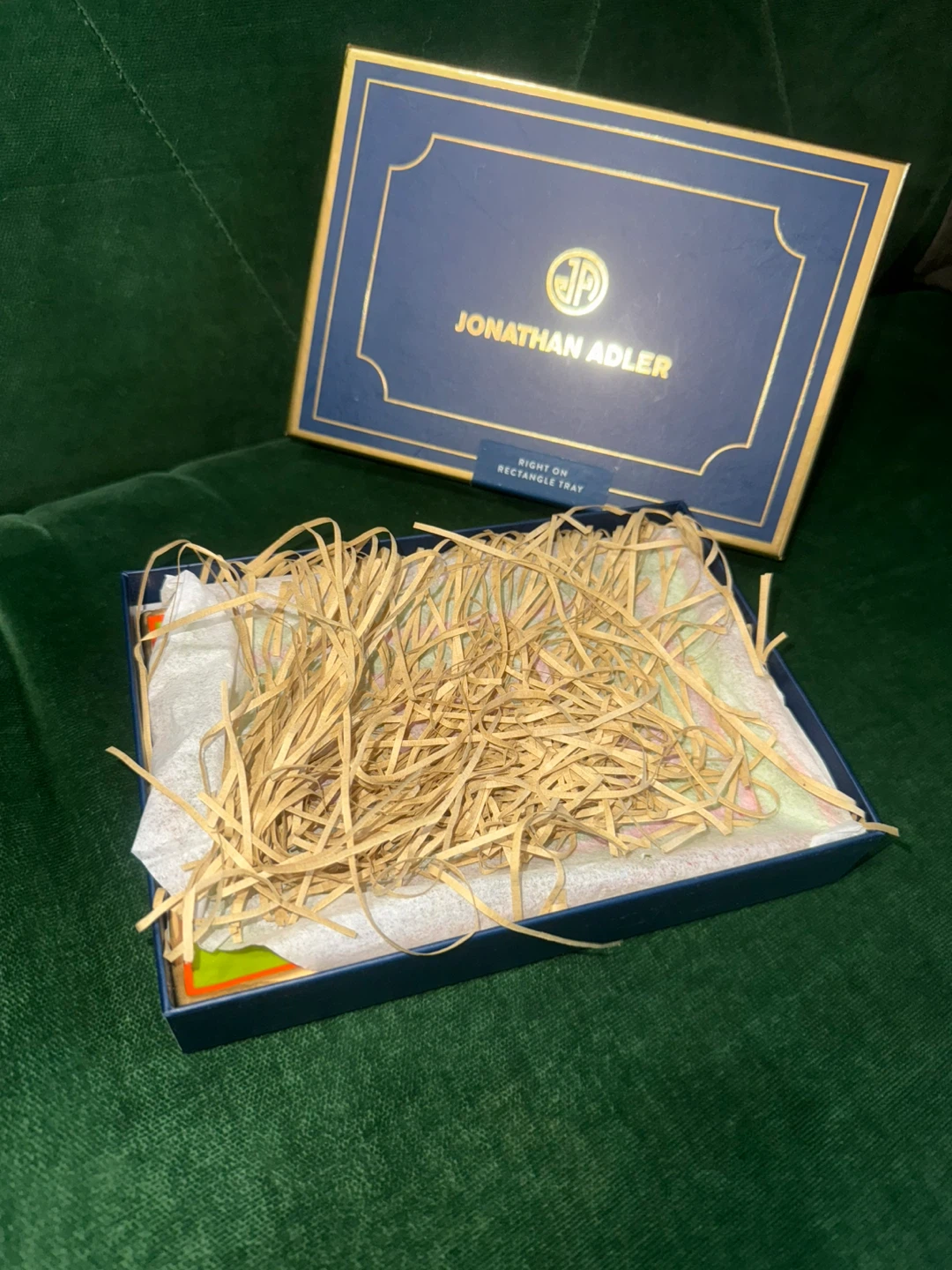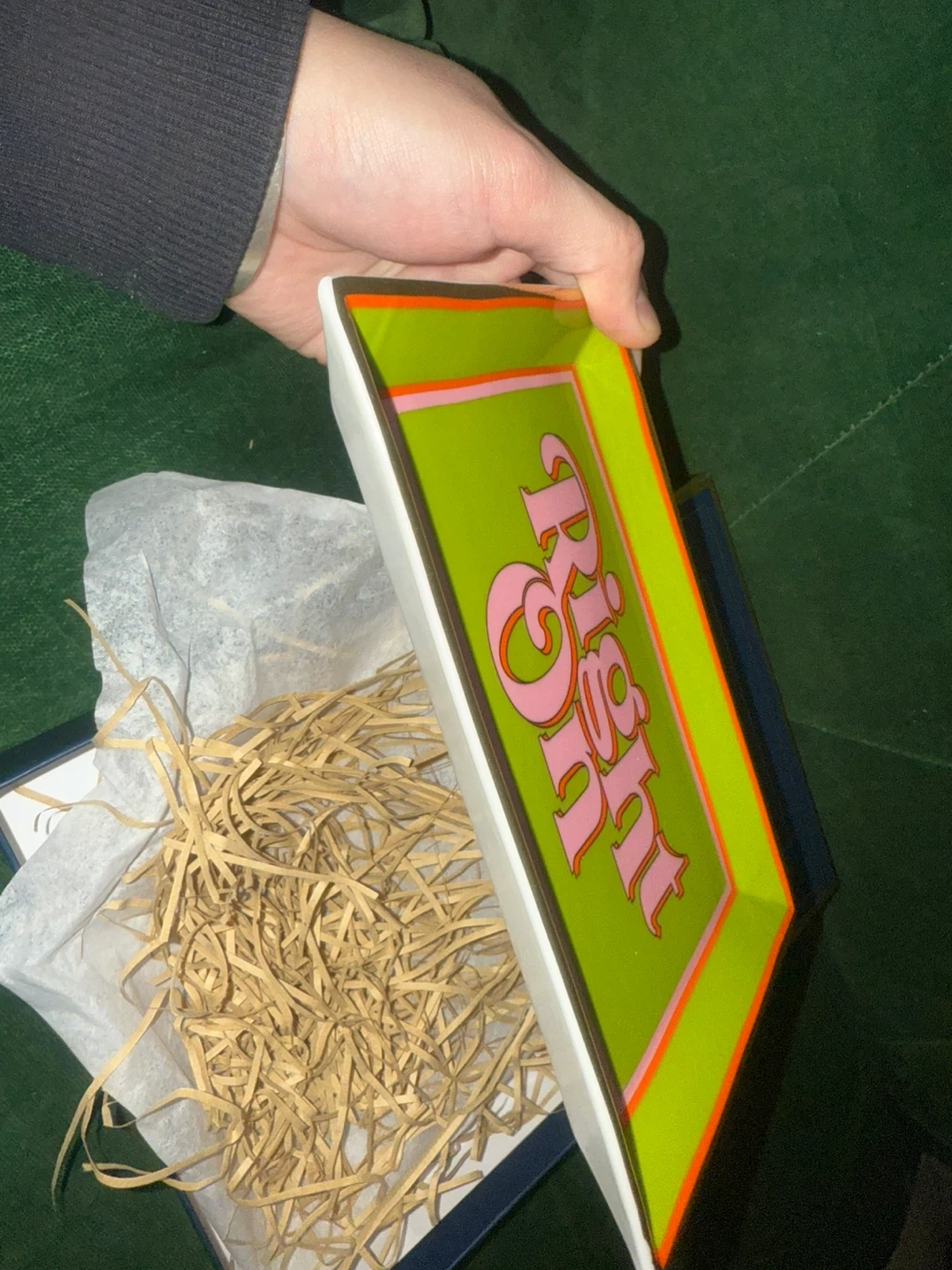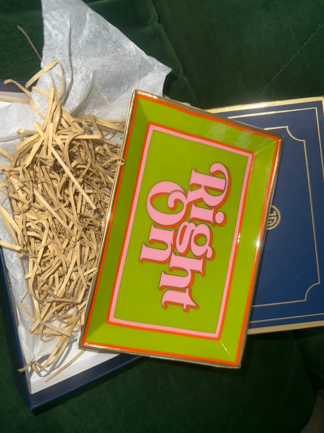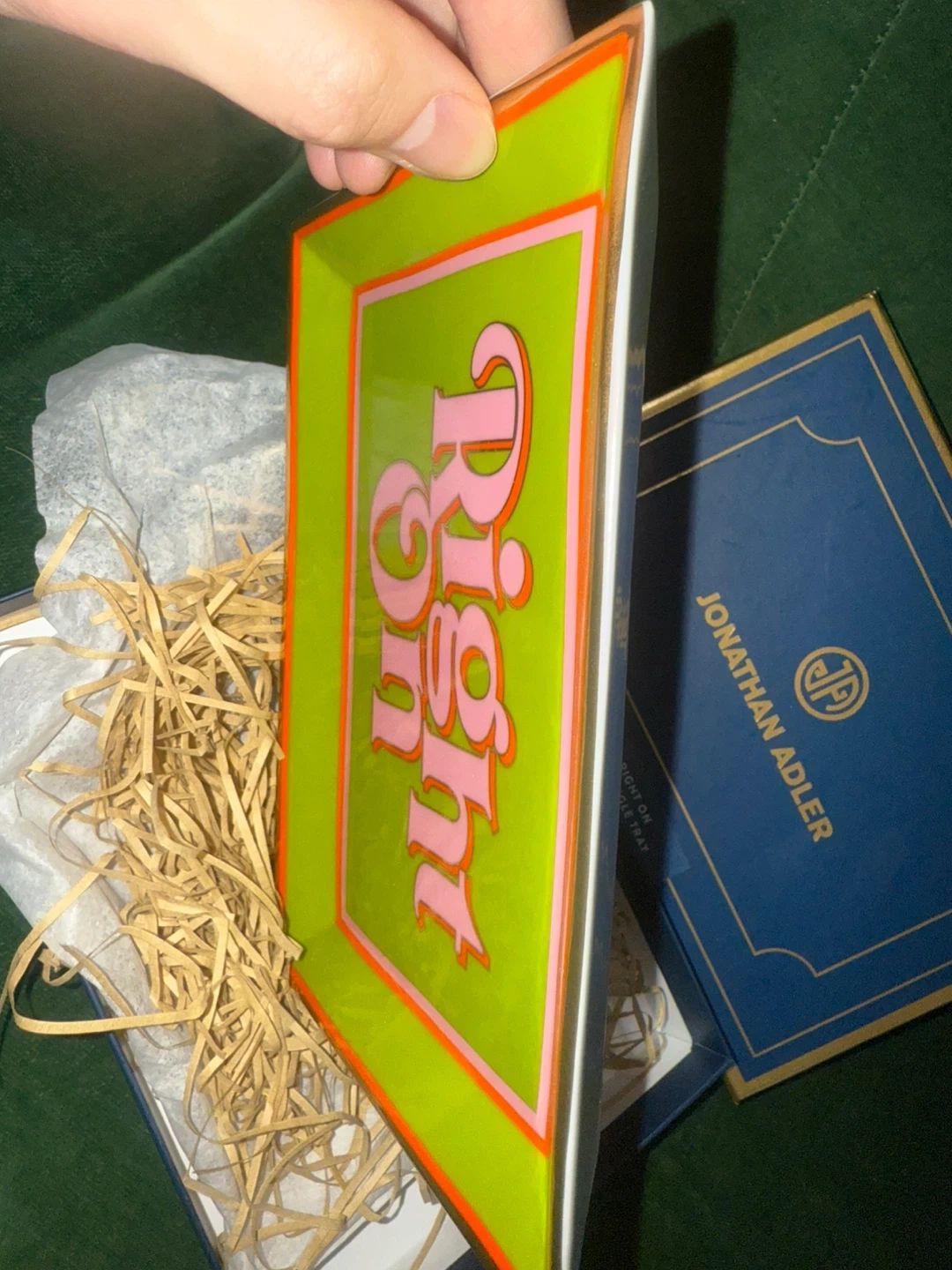 brand new Jonathan Adler 'Right On' rectangle tray! It features a profound bumper sticker sentiment rendered in couture materials with a rad retro palette. Brand new with package.