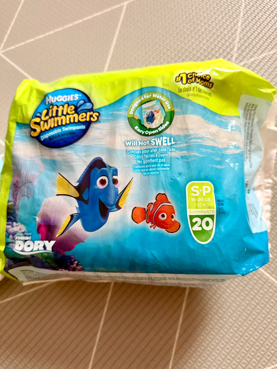 Selling a pack of Huggies Little Swimmers disposable swim pants! They're size small, perfect for little ones weighing 16-26 lbs (7-12 kg). Great for the pool or beach, and designed for water use so they won't swell up. Easy open sides too!