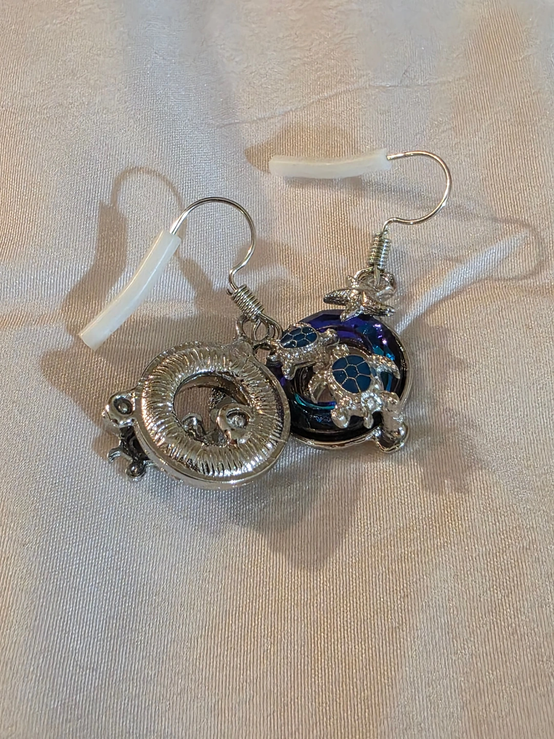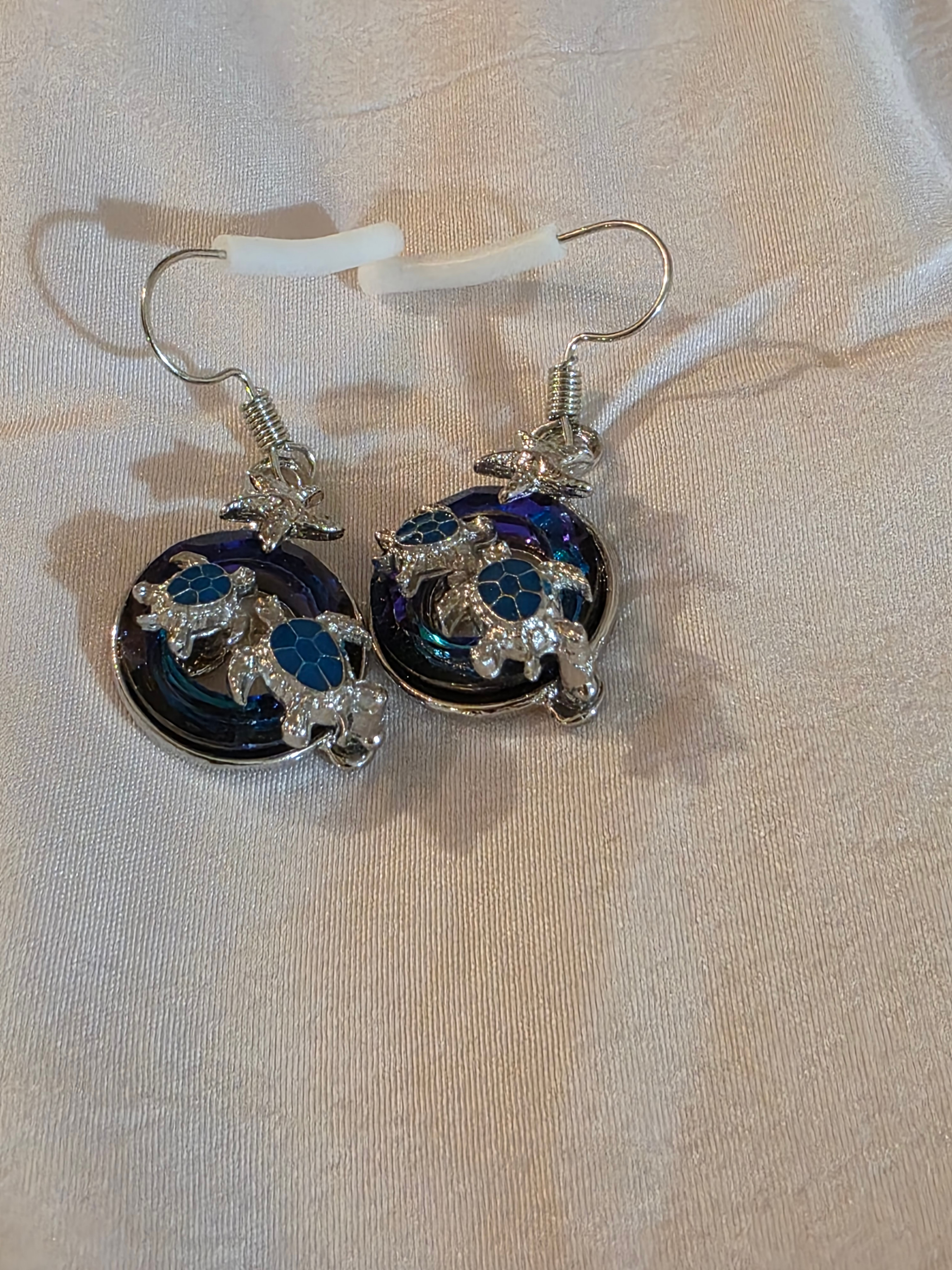 Elegant Turtle and Starfish Dangle Earrings - Blue and Clear Glass Charm with Metallic Accents, Perfect for Daily Wear or Parties, Ideal Birthday Gift.