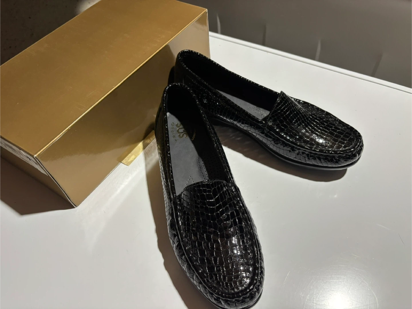 SAS Simplify Black Croc Slip-On Loafers